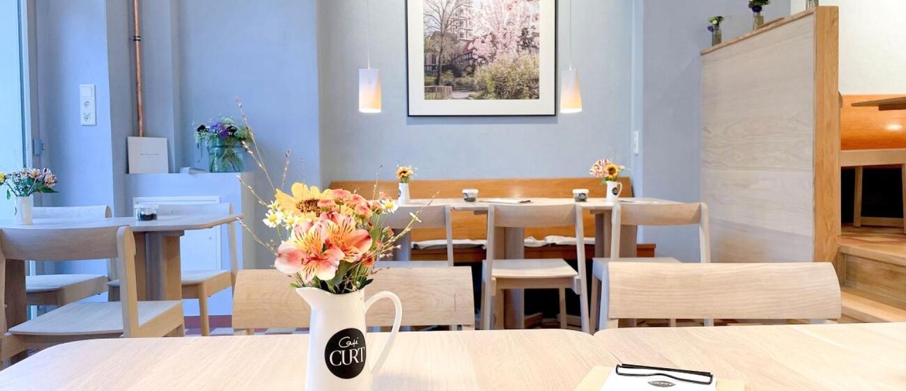 Ganz besonders überrascht das Café CURT natürlich mit ausgesuchten Kaffee- und Teespezialitäten, regionalen Weinen und Säften sowie einer frischen und authentischen Speisekultur. Und das mitten in Naumburg! Das Café CURT ist ein beliebter Treffpunkt zum Frühstück, Mittagessen oder zu Kaffee und Kuchen. Es hat Platz für bis zu 45 Personen im Kaminzimmer und auf der Dachterrasse.