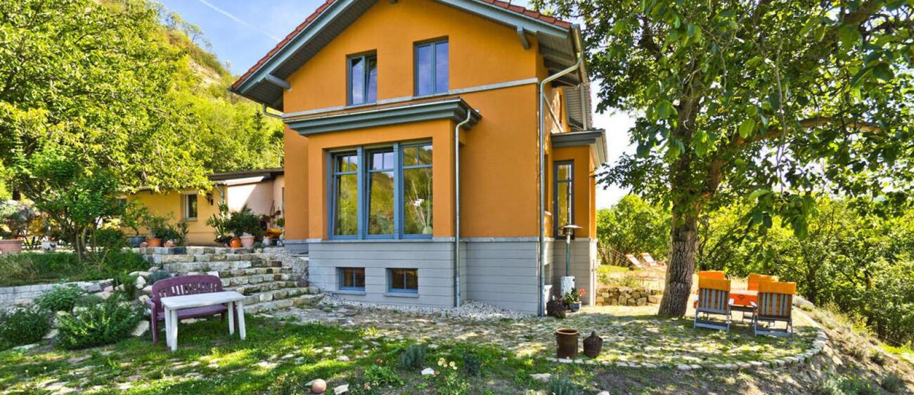 Unterhalb grenzt das Grundstück direkt an die Saale.