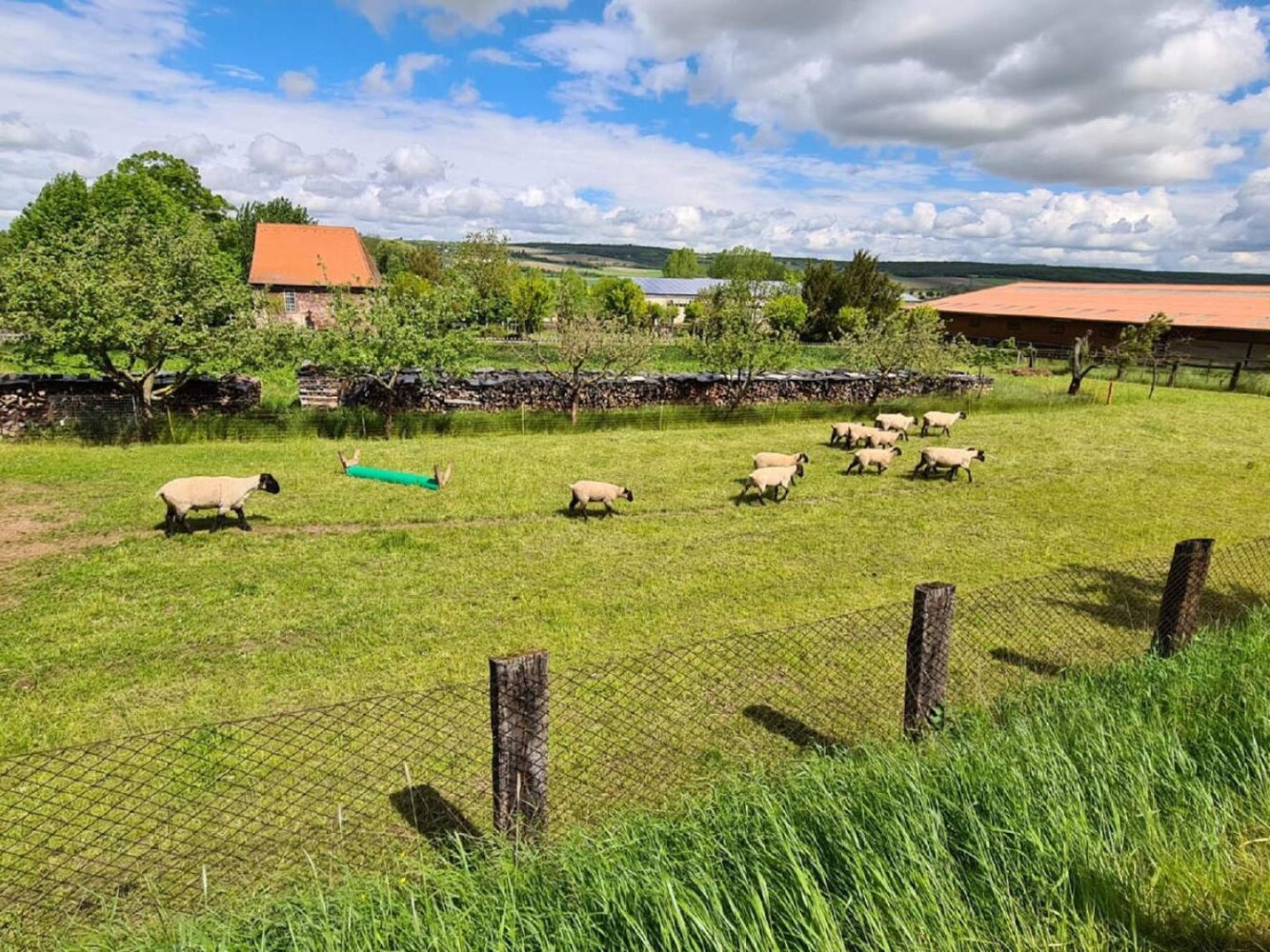 Ein historischer 3-Seiten-Bauernhof, denkmalgeschützt, entkernt und bis 2020 komplett saniert. Seit 2021 heißen wir in unserer Ferienwohnung Gäste willkommen. Mit 100 m² bietet die Wohnung reichlich Platz für mehrere Personen: Ein Badezimmer, zwei Schlafzimmer mit je einem Doppelbett und einem Kinderbett, sowie ein Schlafsofa im Wohnzimmer erlauben es bis zu 6 Personen und einem Kleinkind ganz im grünen Urlaub zu machen. Es erwartet Sie außerdem eine ausgestattete Küche, ein Wohnzimmer mit TV, Büchern und Gesellschaftsspielen. Parkplatz und WLAN sind vorhanden. Das Laden eines E-Autos ist nach Absprache möglich. Sowohl ein Starkstromanschluss als auch eine 220 V Steckdose stehen zur Verfügung. Das Ladegerät ist bitte selbst mitzubringen und für die Nutzung des Stromes fallen Nutzungsgebühren an. Informationen zum Dorf: Nicht einmal 500 Einwohner zählt unser kleines Dörfchen. Dafür nutzen wir jede Gelegenheit um ausgiebig zu feiern: Pfingsten, Ostern, Weinblütenfest, Maifeuer, Rosenblütenfest, Heimatfest und nicht zu vergessen die Feste unsere Nachbarorte: Weinmeile, Weinfrühling, Kirschfest, Winzerfest und die Hoffeste der einzelnen Winzer. Ansonsten leben wir hier eher ruhig: Es kräht der Hahn, es wiehert mal ein Pferd und ansonsten kommt jeden Donnerstag die Müllabfuhr und piepst beim einminütigen rückwärtsfahren und die Feuerwehr überprüft immer Mittwochs 15 Uhr ob ihre Sirene noch geht,... das wars auch schon. Im Ort selbst gibt es ein historisches Gutshaus, einen Spielplatz, einen Fleischer und einen Hofverkauf von Gemüse und Grünpflanzen, außerdem einen Park, zwei Gaststätten und zwei Reiterhöfe. Der Jakobspilger-Weg führt an den Pferdekoppeln vorbei mitten durchs Dorf. Große LKWs dürfen in unserem Dörfchen wegen der Traglast unserer Flussbrücke nicht fahren, außerdem ist das komplette Dorf eine 30er-Zone. Informationen zur Region: Wer nicht nur Ruhe und Natur auf sich einwirken lassen möchte. Kultur und Unterhaltung können wir auch! 3 km sind es bis zum UNSESCO Welterbe Naumburger Dom, 4 km bis zur Mittelalterburg: Schloss Neuenburg, zum nächsten Freibad und zu einer der erfolgreichsten ostdeutschen Firmen überhaupt: der Rotkäppchen Sektkellerei 6 km bis zum Kino 8 km bis zum nächsten Hallenbad 10 km bis zur Landesschule Kloster Pforta 13 km bis zum nächsten Tierpark 30 km bis zum Besucherzentrum der Himmelsscheibe von Nebra Und wenn es doch einmal die große Stadt sein soll, dann sind Sie mit dem Auto in einer Stunde sprich 65 km im Stadtzentrum von Leipzig, Weimar oder Erfurt.