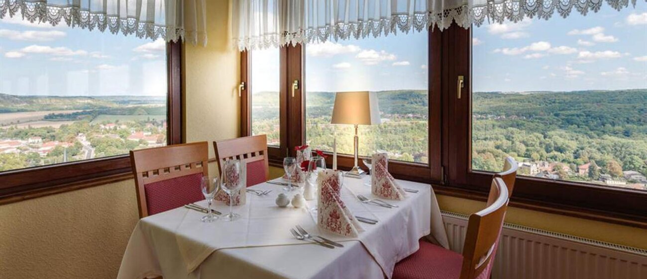 Im Restaurant genießt man die allseits gelobte bürgerliche und regionale Küche, Weine von Saale und Unstrut und den herrlichen Blick ins reizvolle Saaletal. Für Tagungen und Seminare stehen helle Räume mit moderner Tagungstechnik zur Verfügung. Über einen ausgezeichneten Wanderweg erreicht man in ca. 10 min. den Stadtkern.