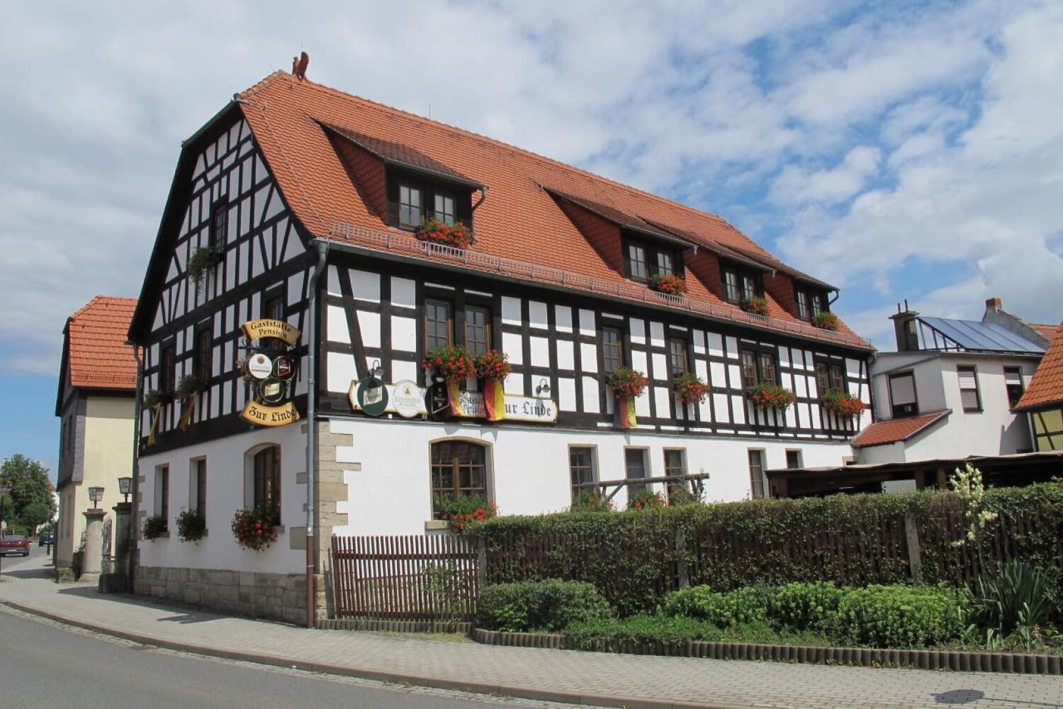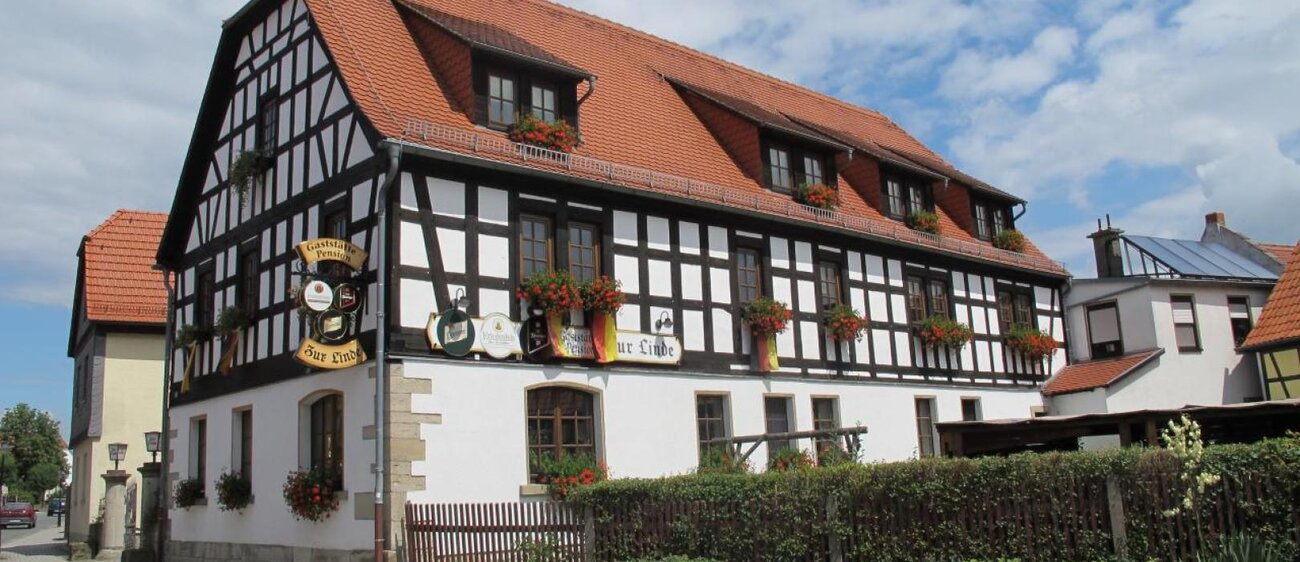 Das langjährige, familiär geführte Fachwerkhaus wurde im 16. Jahrhundert erbaut und befindet sich in unmittelbarer Nähe des Autobahnkreuzes Hermsdorf. Neben 10 praktisch eingerichteten Zimmern stehen auch 4 Appartements für 2 und 4 Personen zur Verfügung.