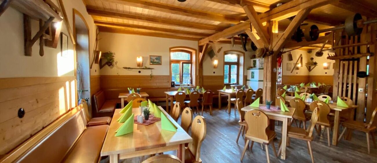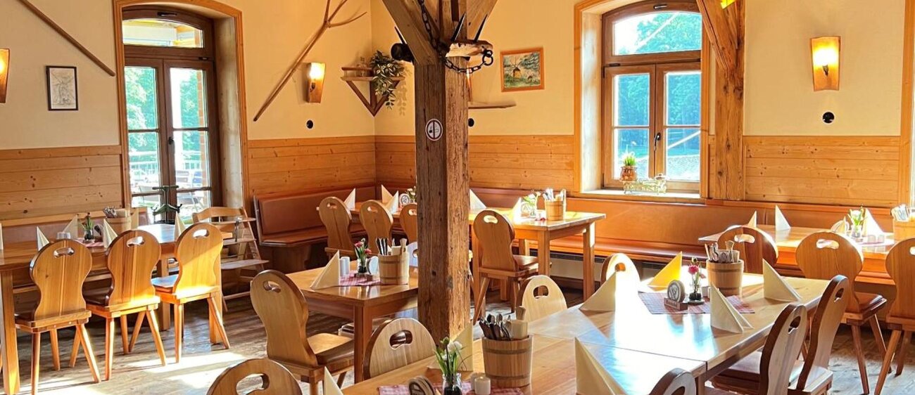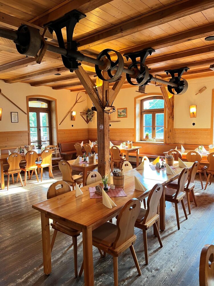 Das Restaurant ,,Mühlenschänke" befindet sich im 2. Obergeschoss, das Restaurant ,,Mehlkammer" befindet sich im 1. Obergeschoss der historischen Ölmühle. In der Mühlenschänke finden Sie 90 Sitzplätze und 30 Sitzplätze auf der Sonnenterrasse (direkt über dem Wasserrad). In der Mehlkammer finden Sie ca. 70 Sitzplätze.