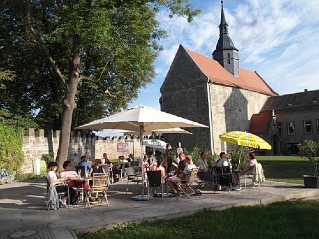 Direkt auf dem Schlosshof befindet sich unsere Gaststätte mit gemütlicher Stube und 50 Sitzplätzen sowie mit ca. 60 Sitzplätzen die sonnige Terrasse mit Blick auf das Schloss und zu unserem anliegenden Kinderspielplatz samt neuer Spiele-Ritterburg.