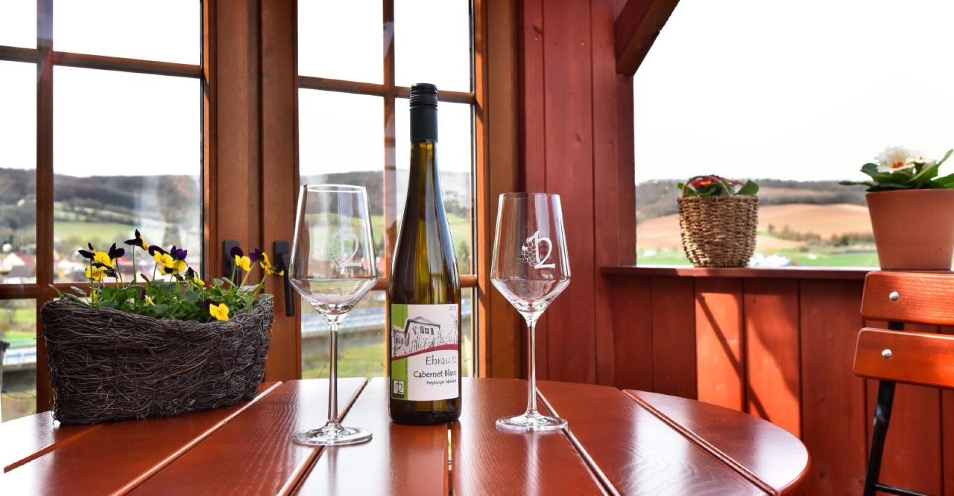 Seit 2020 werden auf dem eigenen Weinberg in den Ehraubergen mit viel handwerklichem Geschick die Rebsorten Cabernet Blanc und Grauburgunder angebaut. Zu ganz besonderen regionaltypischen Weinen werden die per Hand gelesenen Trauben vom in der Nähe gelegenen Weingut Böhme & Töchter veredelt.