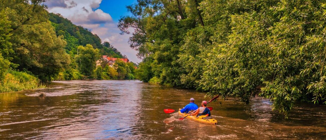 Im Naturpark der Saale bevölkern türkisschimmernde Eisvögel und verschiedene Reiherarten die Reiseroute der Wasserwanderer. Auch Nutrias und Kormorane zeigen sich zwischen den dicht bewachsenen Ufern.