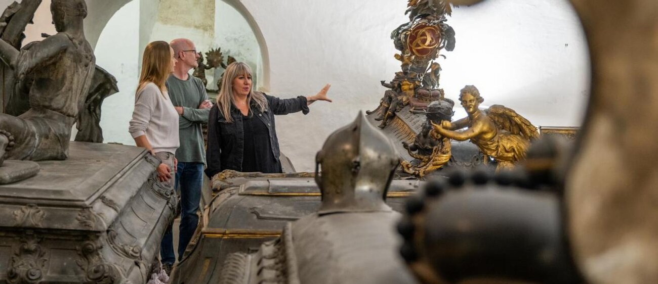 Besichtigen Sie die Ruhestätten der Herzöge von Sachsen-Weißenfels und ihren Angehörigen. Die 38 prunkvollen Särge aus Zinn und Holz können Sie jeden letzten Samstag im Monat stündlich im Rahmen einer Schlosskirchenbesichtigung bestaunen.