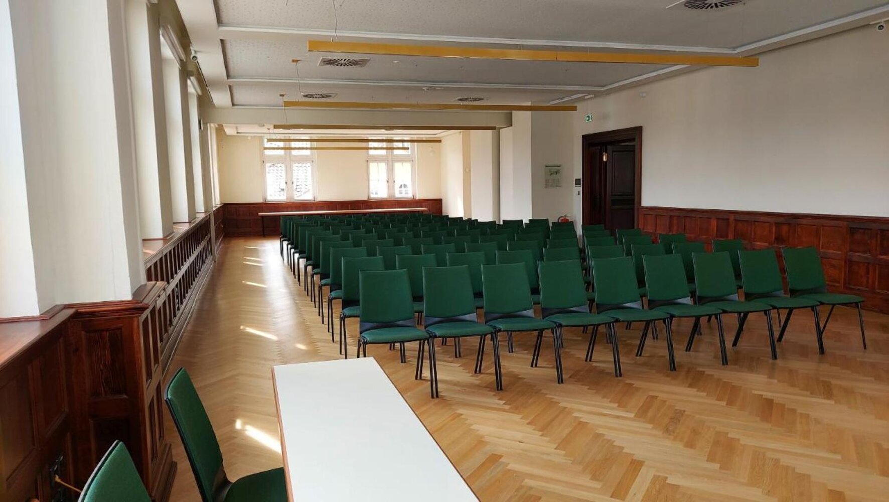 Hell, mit viel Licht, ist dieser Raum im zweiten Obergeschoss des Turmgebäudes perfekt für kleinere Tagungen. Hier ist ebenfalls die dazu passende Technik auf neustem Stand.