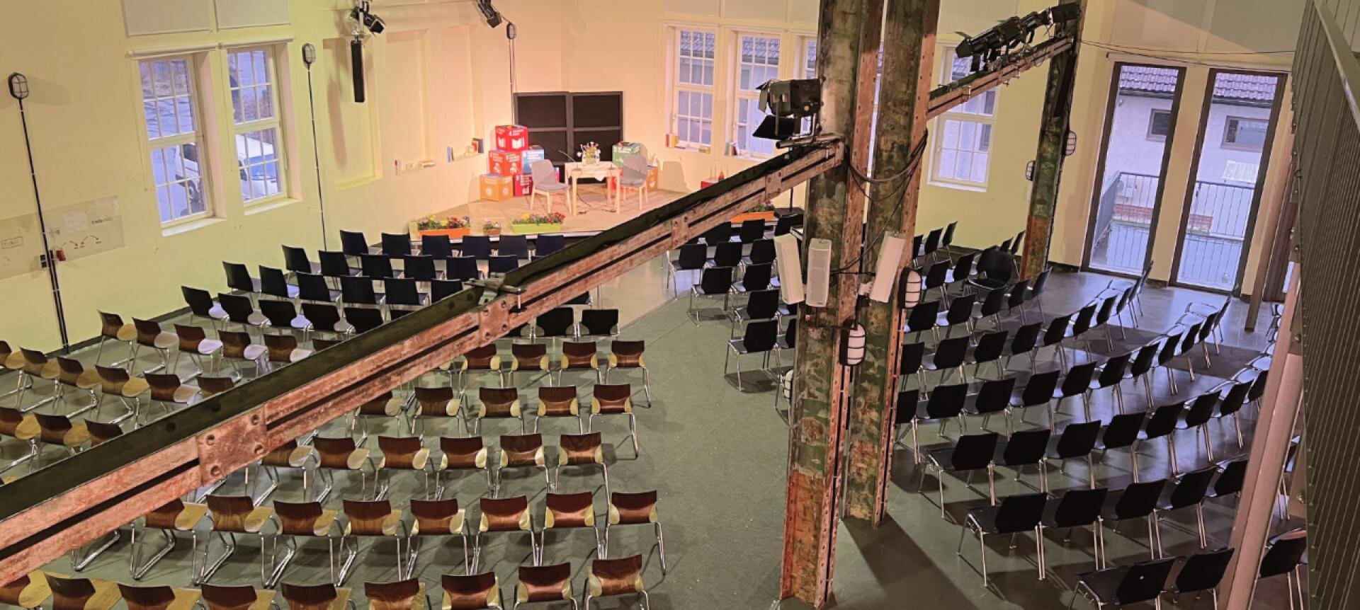 Die Spielhalle ist ein großer, über zwei hohe Etagen reichender, sehr heller Raum mit einer Fensterseite nach Süden. Die Spielhalle kann man von der Galerie in der oberen Etage wunderbar überblicken.