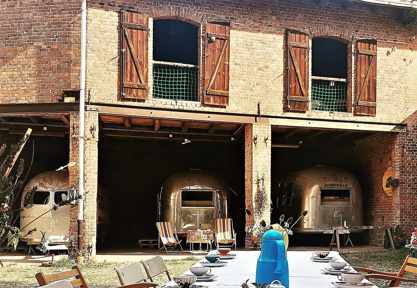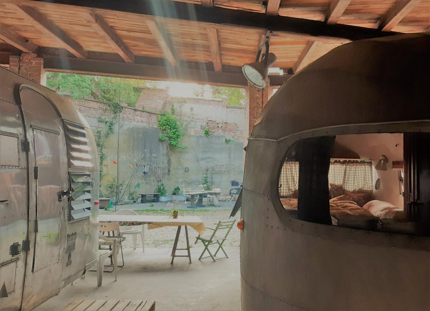 Diese Unterkunft ist etwas außergewöhnlich und passt nicht in die üblichen Hotel-Kategorien. In unserem Werkstatthof kann man in amerikanischen Oldtimer-Wohnwagen übernachten. Die Trailer sind unterschiedlich ausgestattet und bieten Platz für Einzelreisende sowie Familien und kleine Gruppen. Der Waschraum mit Dusche und zwei Unisex-Toiletten ist gemeinsam zu nutzen. Wir haben eine kleine Werkstattküche, sowie Kühlmöglichkeiten und Grill zur Selbstversorgung. Hof und Garten bieten Platz zum Aufenthalt. Fahrräder können untergestellt, geladen oder auch repariert werden. Für kühle Abende gibt es eine Sauna sowie eine Feuerschale und eine Tischtennisplatte. Der Werkstatthof ist 200 m vom Saaleradweg entfernt. In 3 Minuten erreichen Sie Bus und Bahn. Einkaufsmöglichkeit sowie kostenfreie Parkplätze sind unmittelbar vor dem Haus.