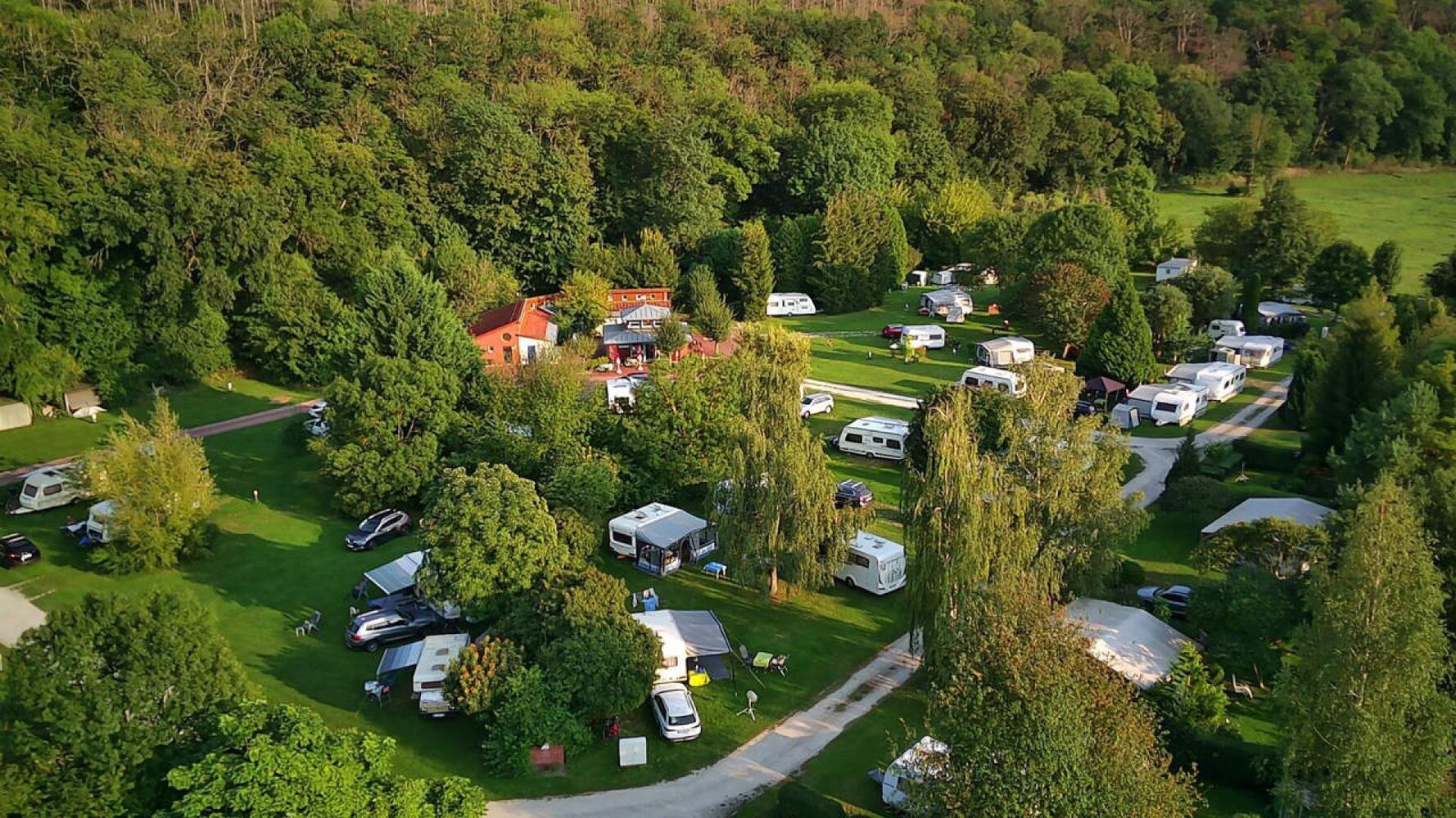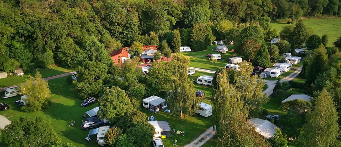 - 120 Stellplätze auf ebenem Wiesengelände mit Baumbestand (tw. mit Abwasseranschluss)