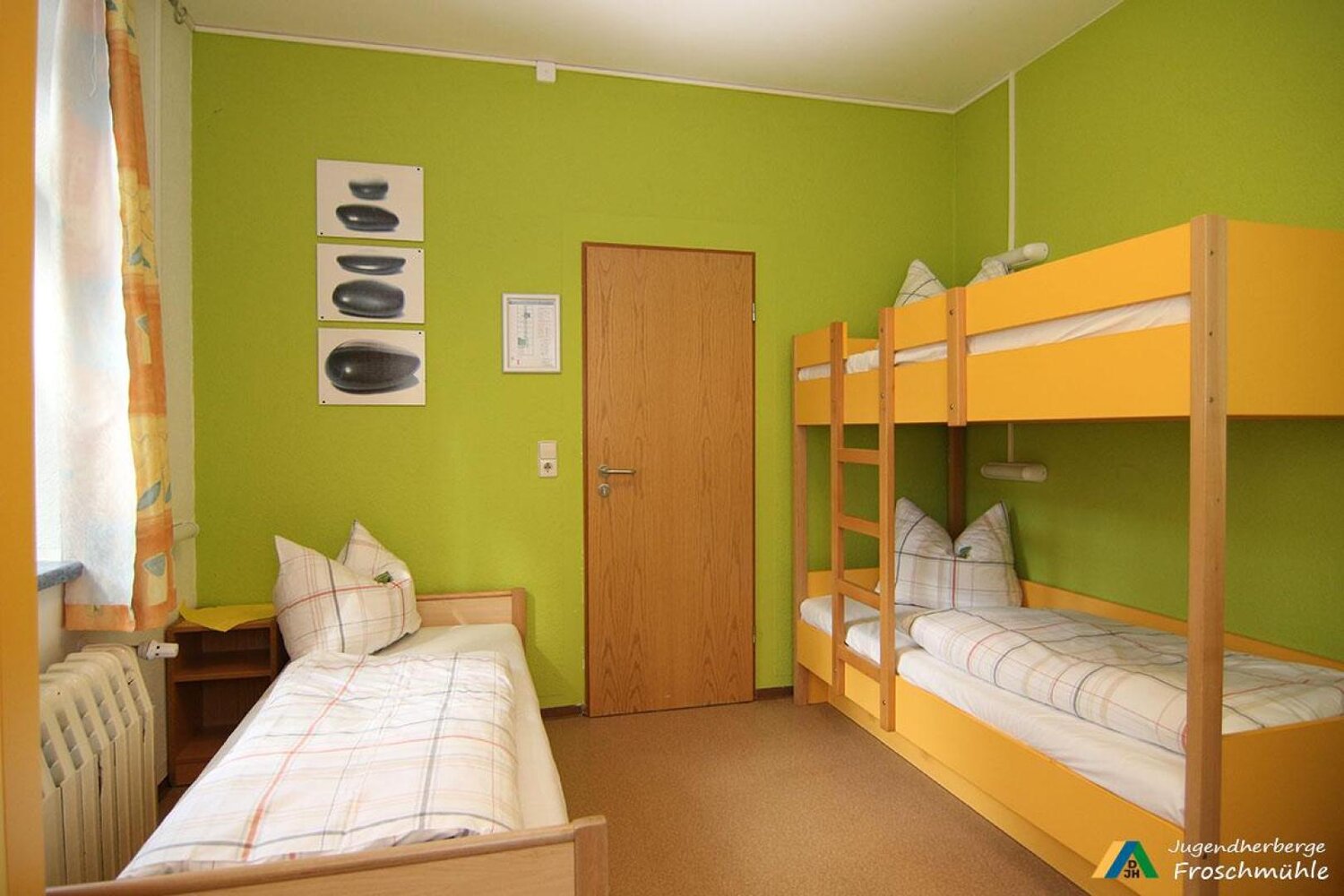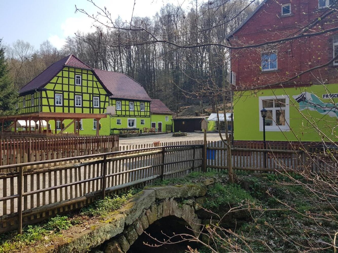 Die ehemalige Säge- und Getreidemühle liegt im idyllischen Mühltal im Thüringer Holzland. Das Haus mit 122 Betten in 33 Zimmern, riesigem Außengelände mit Spiel-, Volleyball- und Bolzplatz sowie einem kleinen Tiergehege ist prädestiniert, eine einzigartige Natur zu entdecken. Auf dem Gelände befindet sich ein kleines Tiergehege. Zudem kann man sich auf Försters Spuren begeben oder Falknern auf der Jagd zusehen.