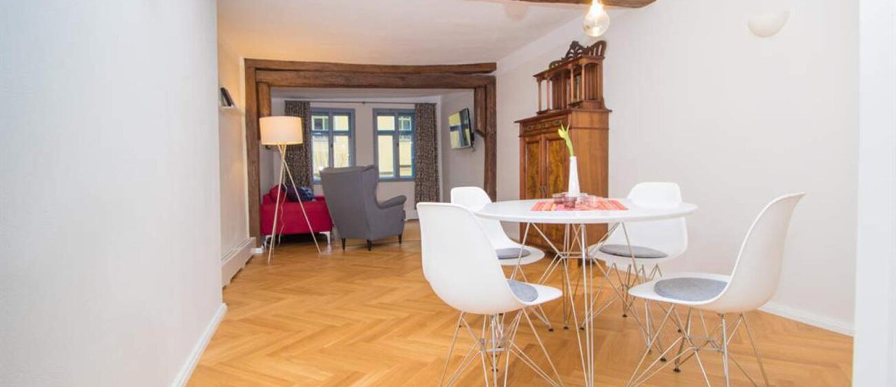 Sie erwartet eine Ferienwohnung mit gehobener Ausstattung. Auf einer Wohnfläche von 82 m² über zwei Etagen stehen Ihnen zwei Schlafzimmer, ein Wohnzimmer, eine voll ausgestattete Küche, ein Bad mit Badewanne und Dusche sowie einen Balkon und begrünten Innenhof zur Verfügung. Die Wohnung ist bestens geeignet für bis zu vier Erwachsene. Kinder bis zwei Jahre wohnen bei uns kostenlos.