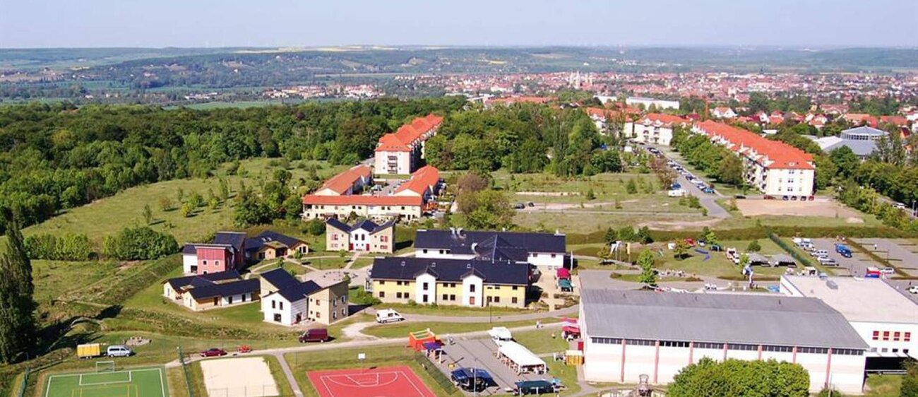 Das Euroville Jugend- und Sporthotel wurde im Jahr 2004 am Stadtrand der Domstadt Naumburg neu errichtet. Mit den 86 modernen Gästezimmern, einem Restaurant, der Sporthalle, dem Bowlingkeller, den Seminarräumen, den Sportanlagen im Außenbereich und dem angeschlossenen Fitnessstudio mit Sauna bietet diese Einrichtung vielen Sportgruppen und Vereinen aber auch Firmen, Familien und Einzelgästen den gewünschten Rahmen für deren geplanten Aufenthalt in der Saale-Unstrut-Region. Besonders hervorzuheben sind die fünf separaten Gruppenhäuser, die im Halbkreis um einen "Dorfplatz" angeordnet sind. Sie verfügen jeweils über 10 praktisch eingerichtete Zimmer mit Du/WC und einem Gemeinschaftsraum mit Terrasse. Die Mehrzahl der Zimmer sind Vierbettzimmer mit 2 Etagenbetten, die aber gern, neben den eigentlichen Zweibettzimmern (mit TV) im Hotelbereich, als Zweibett- oder Einzelzimmer bereitgestellt werden. Für Familien mit Kindern existieren attraktive Kinderermäßigungen.