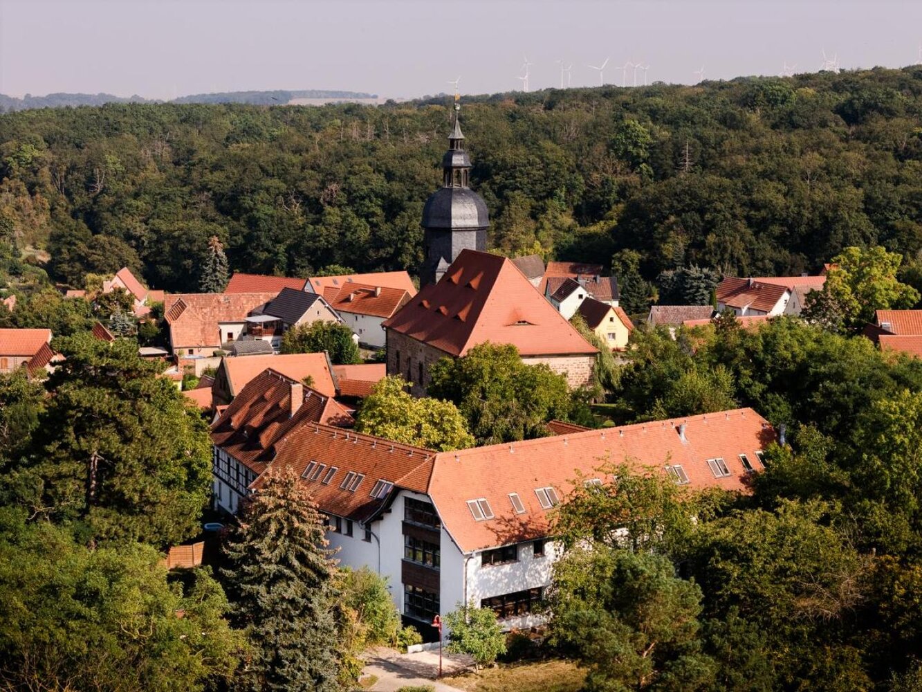 Das Bildungshaus liegt direkt am Saaleradweg. Neben zwei Seminarräumen lädt Sie das gemütliche Lesecafé zum Verweilen ein. Die Räumlichkeiten sind gut geeignet für: Seminare, Chorfreizeiten, Familientreffen/-feiern, Klassenfahrten, Meditation und Fastenwochen. Die Außenanlagen des Bildungshauses bietet ausreichend Platz zum Arbeiten und Tagen in luftiger Atmosphäre. Neben einem Spielplatz und Buchen-Labyrinth befinden sich hier auch ein Sommertheater, welches auf ihre Aufführung wartet, und eine Streuobstwiese. Bänke laden zum Verweilen ein und geben einen wunderbaren Blick vom „Balkon über der Saale“ preis.