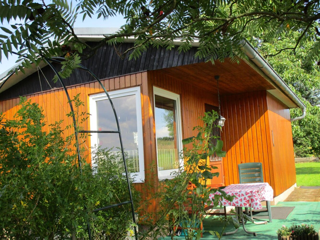 Je weiter der Blick, desto freier das Herz, wäre ein passendes Motto für das Ferienhaus in dem kleinen Ort Lindig bei Kahla. Es erwartet Sie ein Massivbungalow mit teilweiser überdachter Terrasse und herrlichen Ausblick. Der freistehende Bungalow verfügt über ein Wohnzimmer mit integrierter Küche, zwei Schlafzimmer und ein Bad mit Dusche. Kahla, die historisch gewachsene Kleinstadt liegt im landschaftlich reizvollen Teil des mittleren Saaletals und ist in ca. 10 Minuten mit dem Auto erreichbar. Die KAHLA /Thüringen Porzellan Gmbh bietet in seinem Werksverkauf große Auswahl an Porzellan und ist fest mit der Stadt Kahla verwachsen. Die nächst größere Stadt ist Jena. Mit seinen vielen Sehenswürdigkeiten, Museen und Verkaufspassagen ist die Universitätsstadt immer einen Besuch wert und lädt zum Verweilen ein.