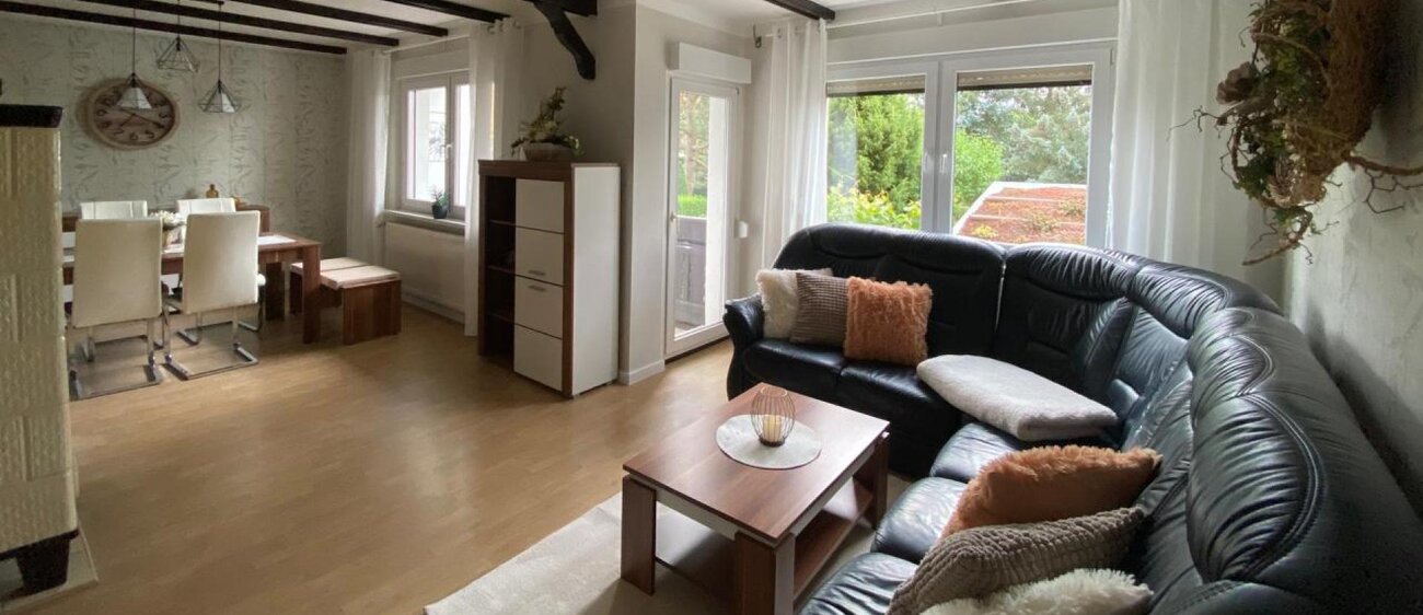 Willkommen im Ferienhaus "Himmelsscheibe" in Ziegelroda, einem malerischen Ort umgeben von einer reizvollen waldigen Landschaft des Ziegelrodaer Forstes. Unser gemütliches Ferienhaus befindet sich in kurzer Entfernung zur imposanten Filmburg Querfurt und dem berühmten Fundort der Himmelsscheibe von Nebra. In unserem Ferienhaus erwartet Sie eine ruhige und idyllische Atmosphäre, perfekt für Erholung und Entspannung oder für einen aktiveren Urlaub mit zahlreichen Ausflugs- und Wandermöglichkeiten. Das Erdgeschoss bietet eine voll ausgestattete Küche mit zwei Küchenzeilen, inklusive Spülmaschine, Backofen, Cerankochfeld, Kühlschrank mit Eisfach sowie Toaster, Kaffeemaschine und Wasserkocher. Ein gemütliches Wohn- und Esszimmer lädt zum Verweilen ein und bietet Zugang einer Loggia mit Ausblick auf den Garten. Ein Gäste-WC komplettiert das Erdgeschoss. Im Obergeschoss erwarten Sie ein großzügiges Badezimmer mit Badewanne, Dusche, WC, Waschbecken, Föhn und Schminkspiegel sowie ein komfortables Schlafzimmer mit Doppelbett und großem Schrank. Zwei Kinderzimmer bieten Platz für die jüngsten Gäste: Das große Kinderzimmer verfügt über zwei ausziehbare Einzelbetten, die zu Doppelbetten umfunktioniert werden können, sowie einen Tisch, eine Wickelkommode und eine Kleiderecke. Das kleine Jugendzimmer bietet ein ausziehbares Einzelbett, das ebenfalls zu einem Doppelbett umgewandelt werden kann, sowie einen Schrank und einen Schreibtisch. Unser Ferienhaus ist der ideale Ausgangspunkt für Erkundungstouren in die Umgebung. Alle Preise beinhalten Bettwäsche, Handtücher, Geschirrhandtücher sowie alle Nebenkosten wie Strom und Wasser. Darüber hinaus bieten wir eine Grundausstattung der Ferienwohnung mit Toilettenpapier, Küchenrolle, Spülmaschinentabs und Reinigungstüchern. Parkplatz, WLAN, Grillplatz und Gartennutzung sind kostenlos. Die Region Saale-Unstrut bietet eine Vielzahl von Sehenswürdigkeiten und Aktivitäten für jeden Geschmack. Besuchen Sie die Perle an der Straße der Romanik, Querfurt, erkunden Sie die Eckartsburg in Eckartsberga oder besichtigen Sie das Borlachmuseum in Bad Dürrenberg. Weinliebhaber können das Weingut Wolfram Proppe in Löberschütz besuchen und Kunstinteressierte sollten das Max-Klinger-Haus in Naumburg nicht verpassen. Für Familien bieten das Freyburger Schwimmbad und das Naturstrandbad in Obhausen Spaß und Erholung. Lassen Sie sich von der Vielfalt und Schönheit der Region überraschen und genießen Sie einen unvergesslichen Aufenthalt im Ferienhaus "Himmelsscheibe".