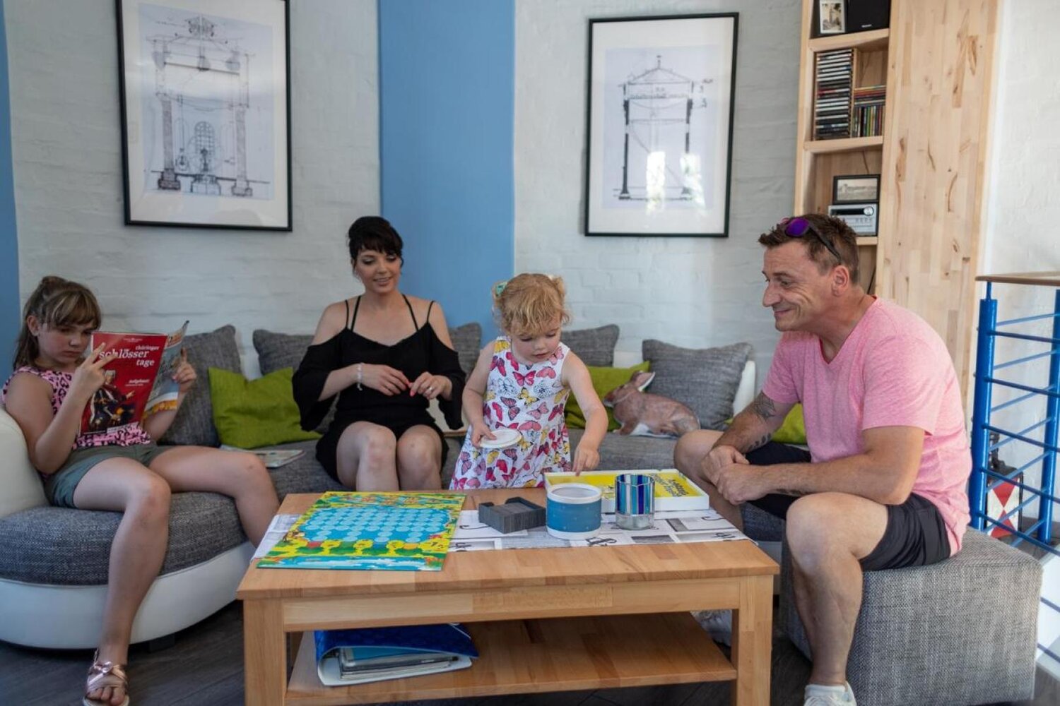 Machen Sie doch mal Urlaub im Wasserturm. Der Wasserturm in Großheringen ist wie ein Ferienhaus eingerichtet - mit ca. 95 m² Wohnfläche auf 5 Etagen und Platz für 5 bis 6 Personen. Die Ausstattung des Turms lässt keine Wünsche offen - eine voll ausgestattete moderne Küche, Fußbodenheizung, ein gemütliches Wohnzimmer, eine Lese- und Spiele-Ecke, ein großes Schlafzimmer. Das Highlight sind die drei gemütlichen Schlafkojen direkt unterm Dach. Den Wasserturm umgibt ein 1.300 m² große eingezäumte Gartenanlage mir einer 60 m² großen Spielscheune.