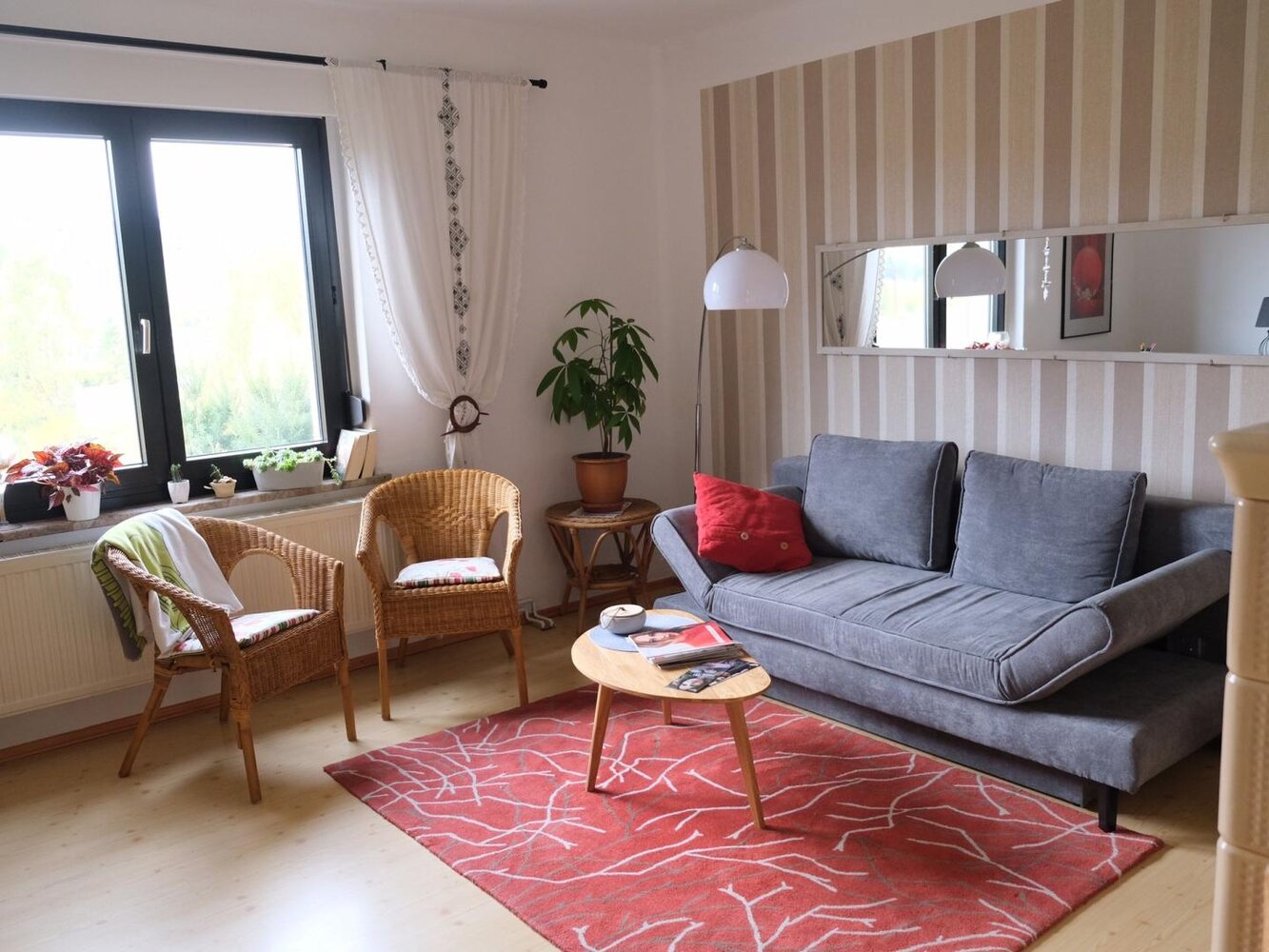 Unsere Nichtraucherferienwohnung (im Erdgeschoss eines Zweifamilienhauses) liegt, zwischen Gera und Jena, direkt am Thüringenradweg, am Rande des wunderschönen Mühltals. Hier können Sie fernab von Lärm und Verkehr tief Luft holen und den Alltag vergessen. Die am Walde gelegene Wohnung kann Ausgangspunkt für viele Wandertouren, Radtouren bzw. kulturelle Ausflüge sein (wie nach Weimar, Erfurt, Leipzig, Eisenach u. s. w.). Im Ort sind keine Einkaufsmöglichkeiten und gastronomische Einrichtungen vorhanden. Die 4 km entfernte Stadt Eisenberg verfügt über eine große gastronomische Vielfalt und eine reichliche Auswahl an Einkaufsmöglichkeiten.