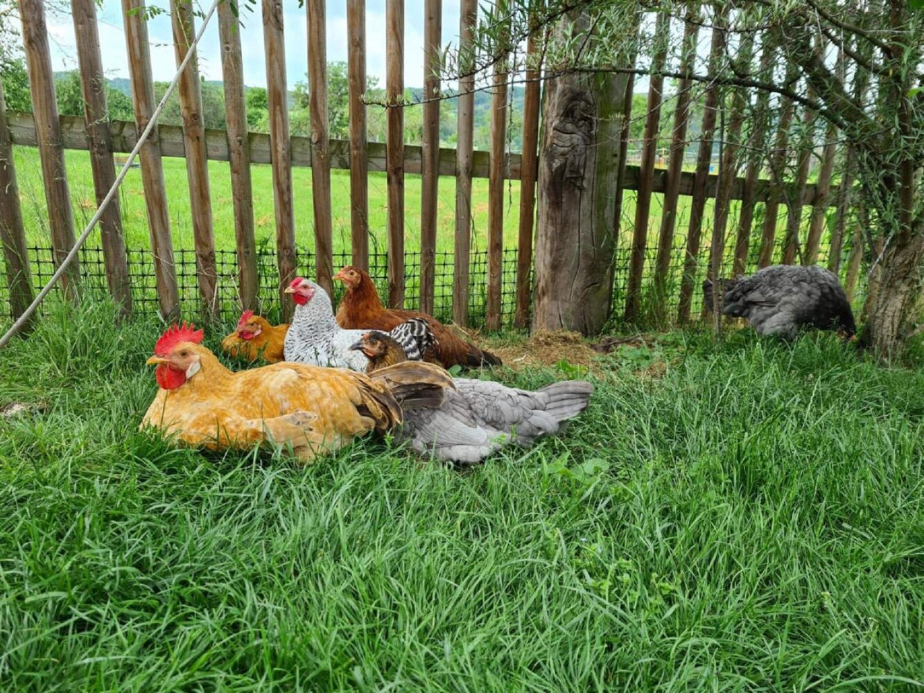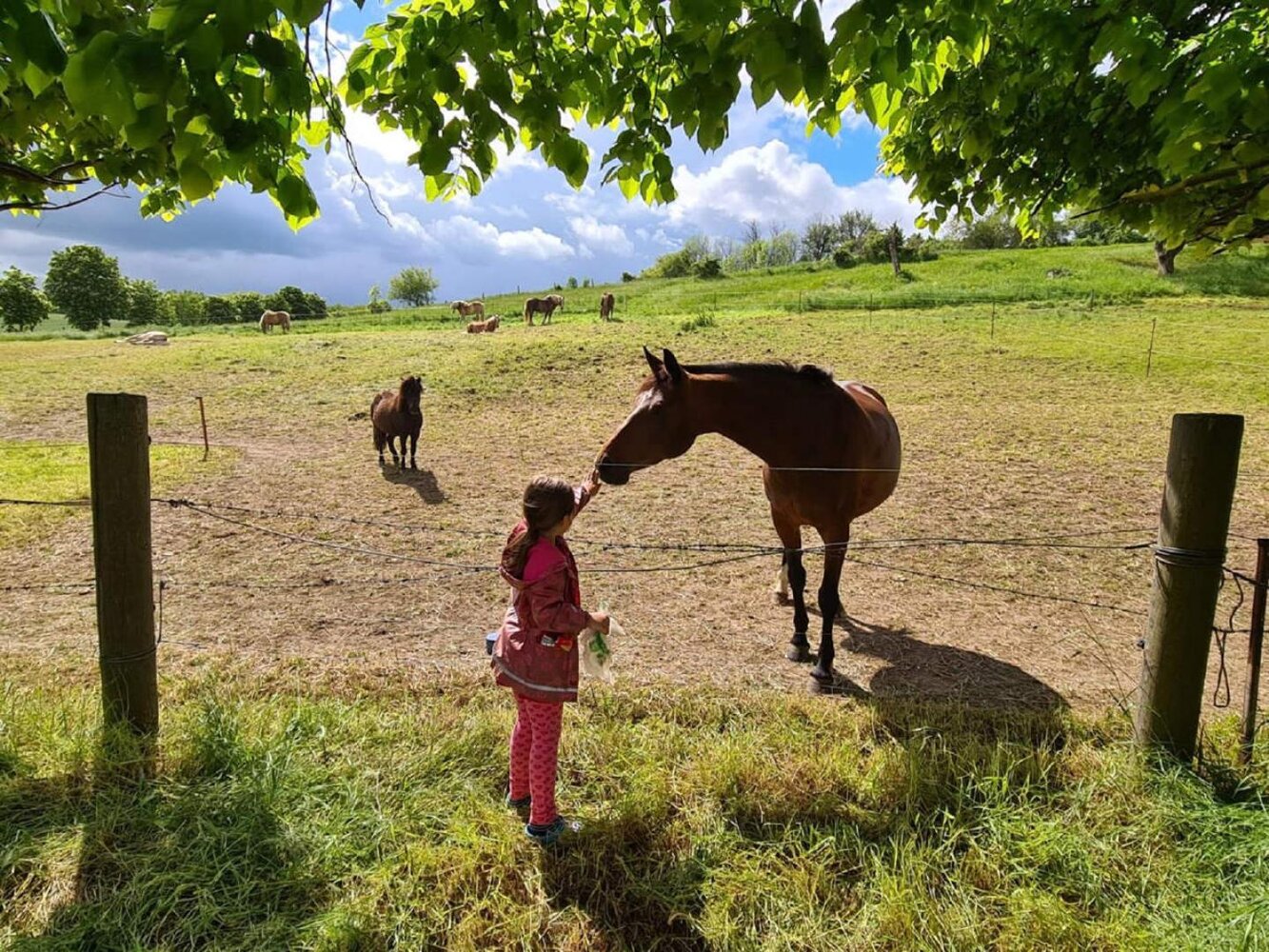 Mit 100 qm bietet die Wohnung reichlich Platz für mehrere Personen: Ein Badezimmer, zwei Schlafzimmer mit je einem Doppelbett und einem Kinderbett, sowie ein Schlafsofa im Wohnzimmer erlauben es bis zu 6 Personen und einem Kleinkind ganz im grünen Urlaub zu machen. Mein Mann und ich haben die Ferienwohnung so ausgestattet wie wir selbst gerne Urlaub machen, nämlich als Familie mit Kind und Kegel, ... Oma und Opa.... 2021 eröffneten wir unsere 100mqm große Ferienwohnung für bis zu 6 Personen und ein Kleinkind. Ein großes Elternbett zwei Meter breit und 2,2 Meter lang unter Fachwerkbalken und mit Blick bis in den Dachgiebel ist dabei das Herzstück unserer Familienwohnung. Ein weiteres Doppelbett steht zusammen mit dem Kinderbett in unserem „Rosenzimmer“ und auf der Schlafcouch im Wohnzimmer finden ebenfalls noch einmal zwei Personen Platz. Sämtliches Bettzeug nebst schöner Bettwäsche sind bei uns immer inklusive. Da man, obwohl Urlaub ist, nicht jeden Tag Essen gehen kann oder möchte haben Sie bei uns die Möglichkeit in einer voll ausgestatteten Küche zu kochen: Backofen, 4 Kochfelder, Kühlschrank, Spülmaschine, Spüle, Kaffeemaschine, Wasserkocher, Auflaufform, Handrührgerät, scharfe Messer,… alles da. Handtücher bekommen Sie selbstverständlich von uns. Im Badezimmer finden Sie neben Waschbecken, Toilette, Badewanne (mit Duschmöglichkeit) einen beleuchteten Spiegel, Föhn, Radio und einen kleinen Heizlüfter. Noch ein Wort zur Barrierefreiheit: als barrierefrei würde ich die Wohnung nicht bezeichnen, allerdings ist sie nah dran. Wo immer es ging wurde auf Schwellen in Türzargen verzichtet und ein eingebauter Treppenlift ermöglicht es Küche, Wohnzimmer, das „Rosenzimmer“ als Schlafzimmer zu erreichen. Sollten Sie in dieser Hinsicht gesonderte Anforderungen an die Wohnung stellen geben Sie uns bitte rechtzeitig Bescheid, mein Mann ist vom Fach, wir können Ihnen sicher weiterhelfen. |