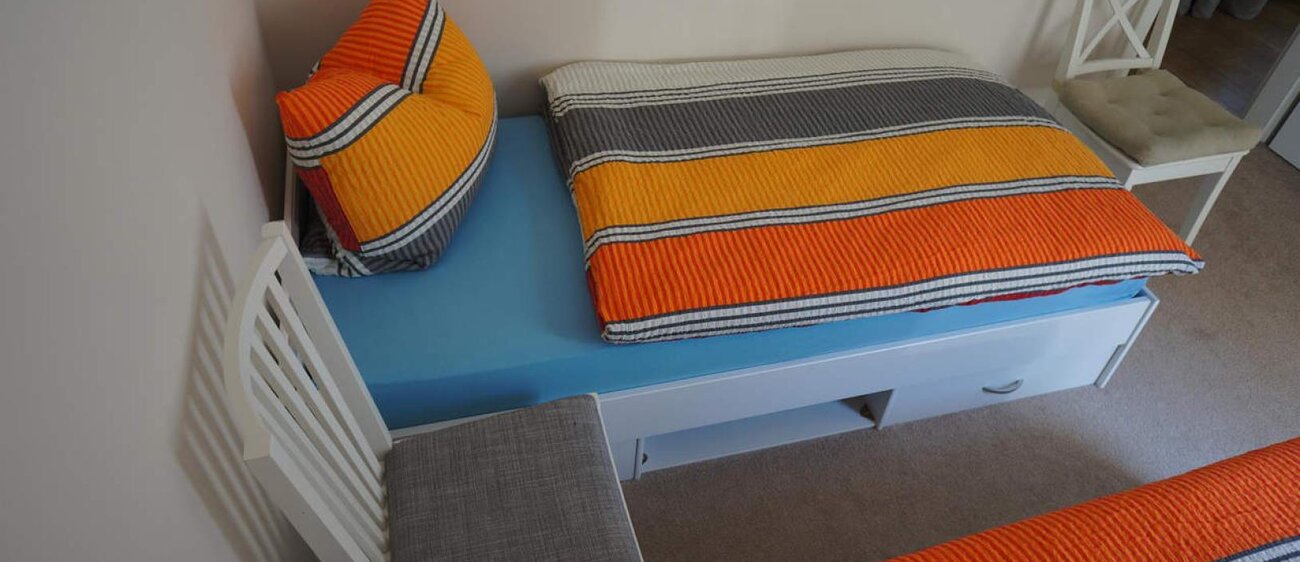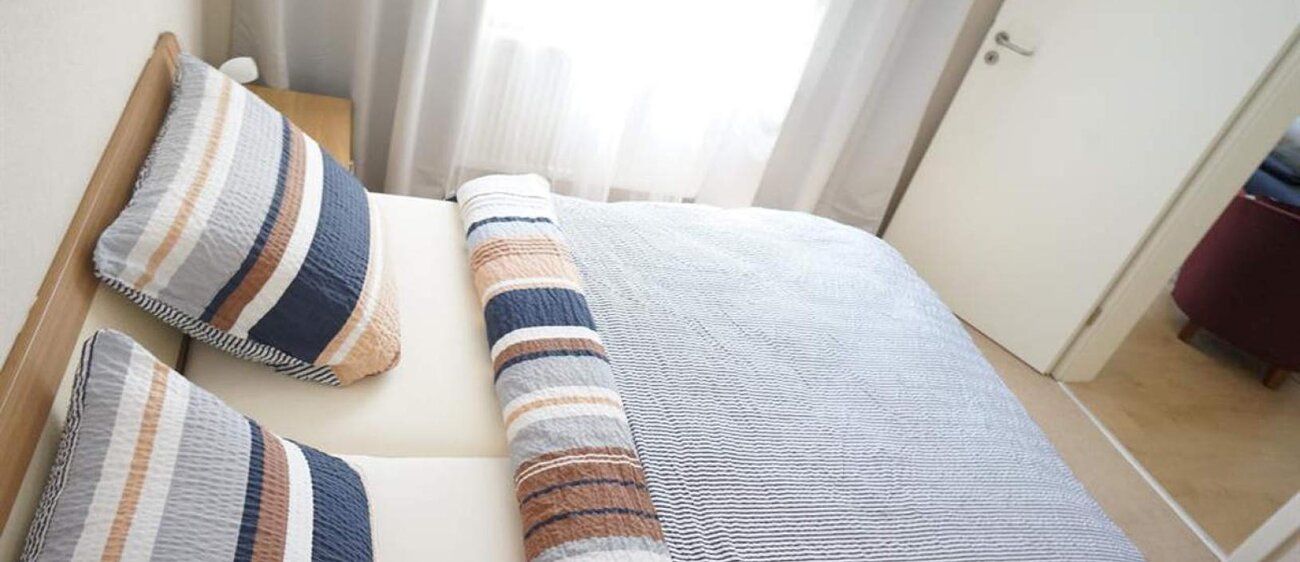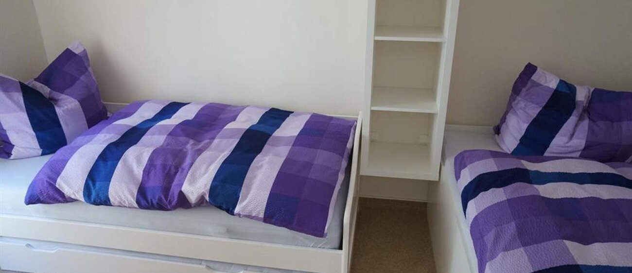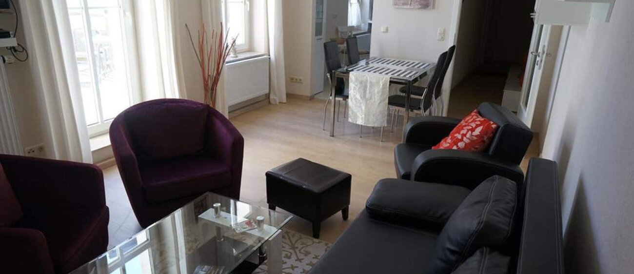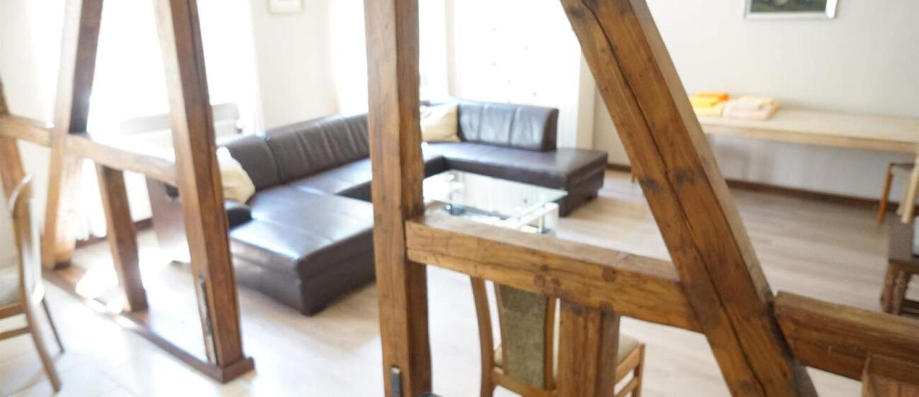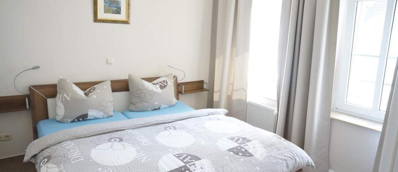 Jede Ferienwohnung besitzt zwei Schlafzimmer zum grünen Innenhof mit jeweils zwei behaglichen Betten (1 Doppelbett, 2 Einzelbetten (jeweils 90 x 200). Alle Schlafzimmer mit Verdunklungsrollos aufs Modernste ausgestattet. Eine Schlafcouch bzw. eine bequeme Klappmatratze im Wohnzimmer, Kinderreisebett, Hochstuhl vorhanden, modernes Bad auch mit Wanne. Geeignet für Allergiker, neu renoviert (Neubauzustand), teilweise mit Fachwerk, WLAN, PKW-Stellplatz kostenlos, Fahrräder stehen sicher im Innenhof. Haustiere auf Anfrage, Rauchen auf dem Balkon, Bettwäsche und Handtücher im Preis enthalten, Bezahlung vor Ort oder per Überweisung, keine Anzahlung erforderlich.