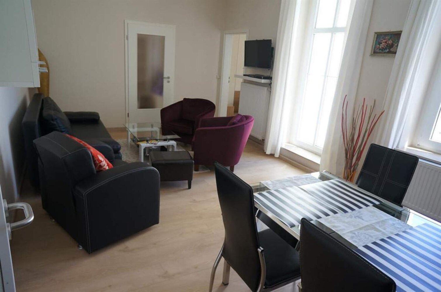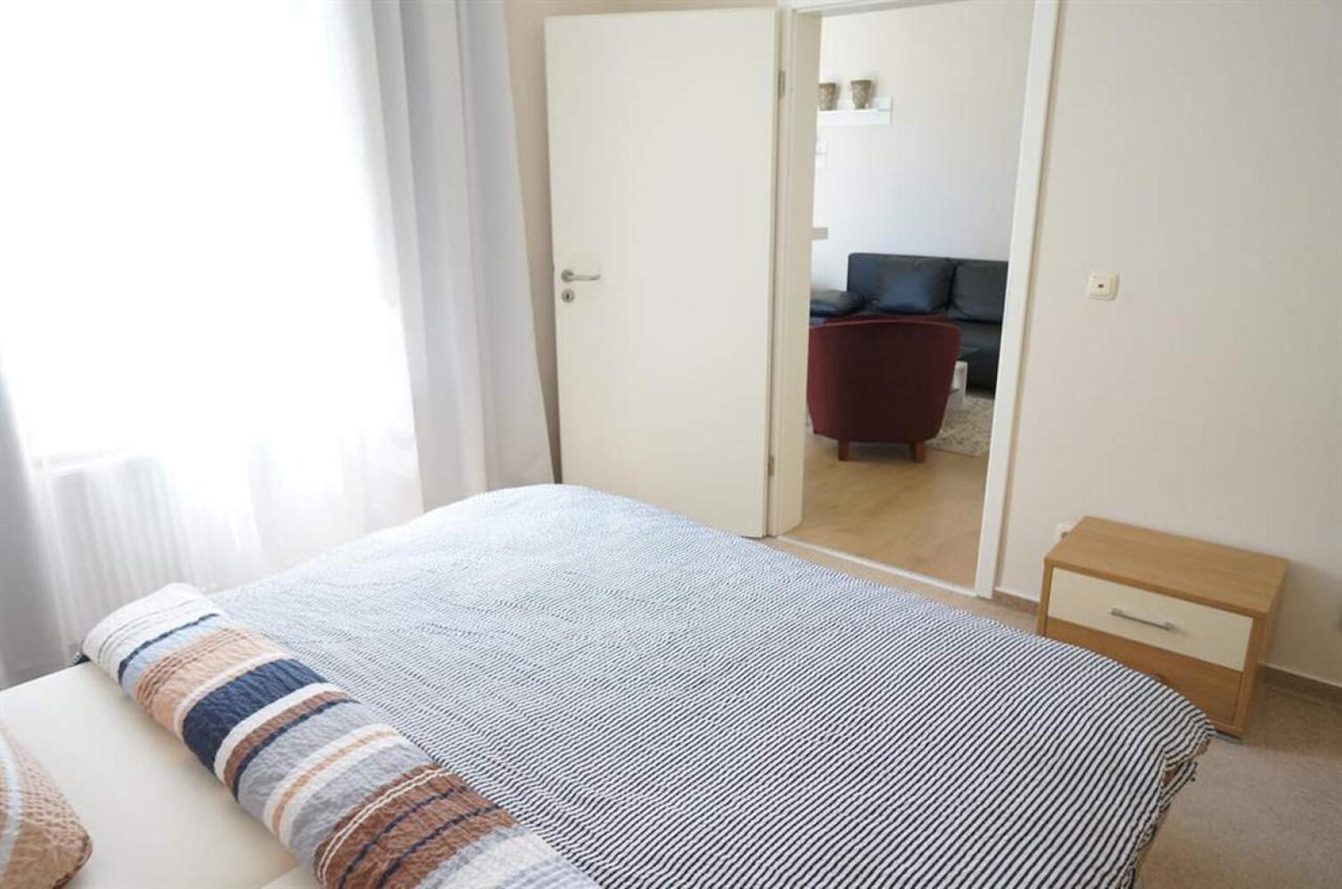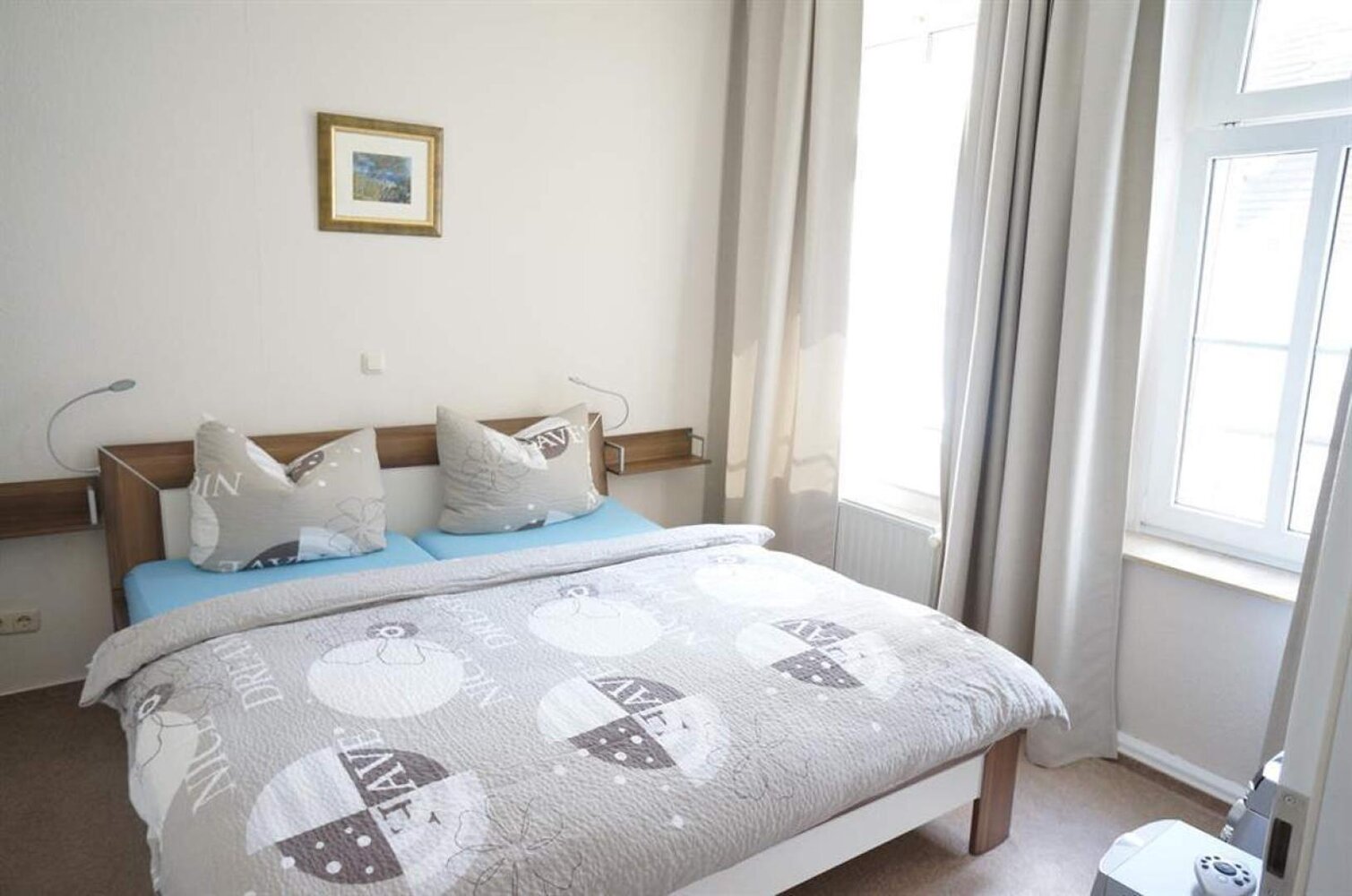 Jede Ferienwohnung besitzt zwei Schlafzimmer zum grünen Innenhof mit jeweils zwei behaglichen Betten (1 Doppelbett, 2 Einzelbetten (jeweils 90 x 200). Alle Schlafzimmer mit Verdunklungsrollos aufs Modernste ausgestattet. Eine Schlafcouch bzw. eine bequeme Klappmatratze im Wohnzimmer, Kinderreisebett, Hochstuhl vorhanden, modernes Bad auch mit Wanne. Geeignet für Allergiker, neu renoviert (Neubauzustand), teilweise mit Fachwerk, WLAN, PKW-Stellplatz kostenlos, Fahrräder stehen sicher im Innenhof. Haustiere auf Anfrage, Rauchen auf dem Balkon, Bettwäsche und Handtücher im Preis enthalten, Bezahlung vor Ort oder per Überweisung, keine Anzahlung erforderlich.