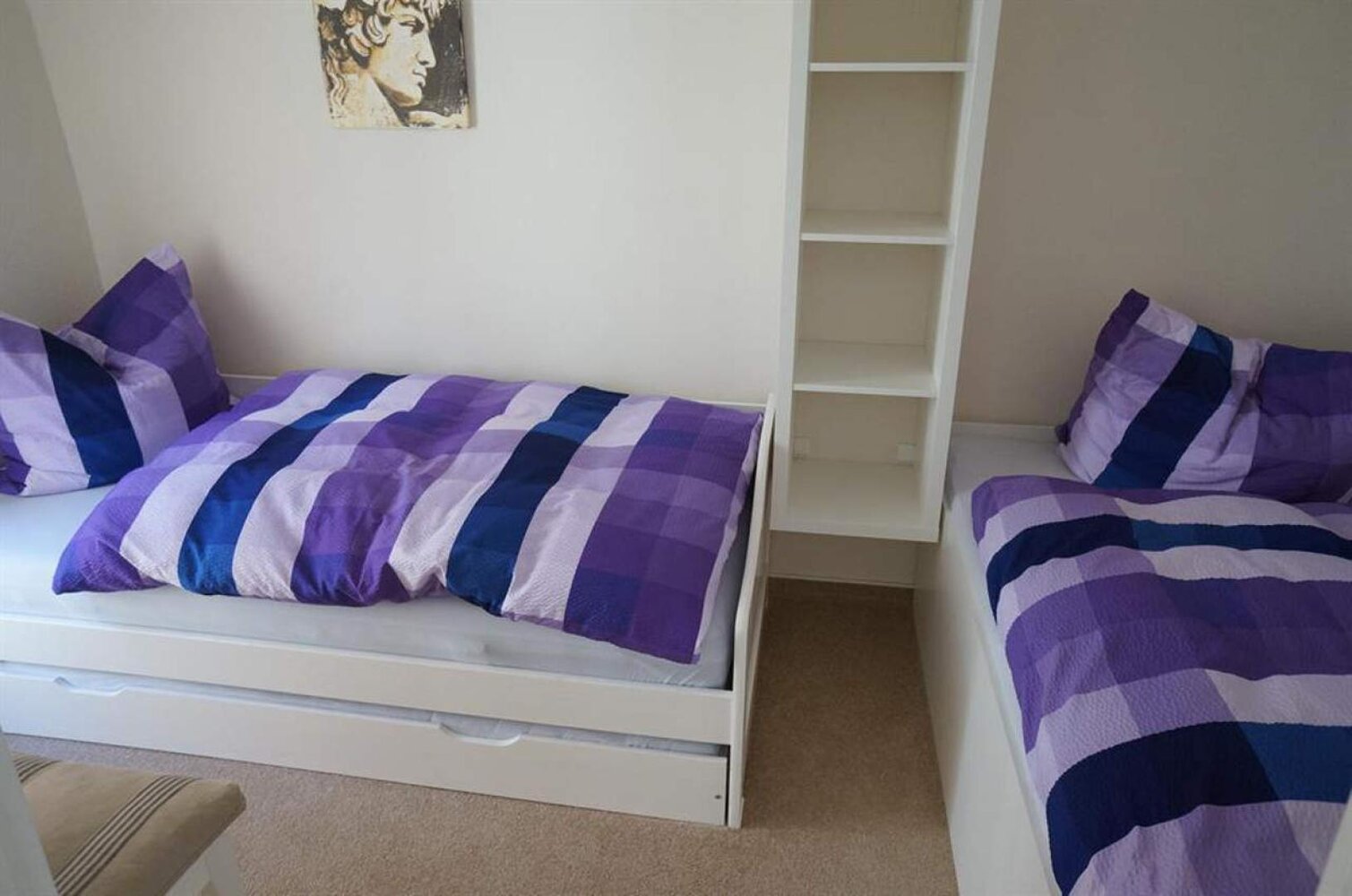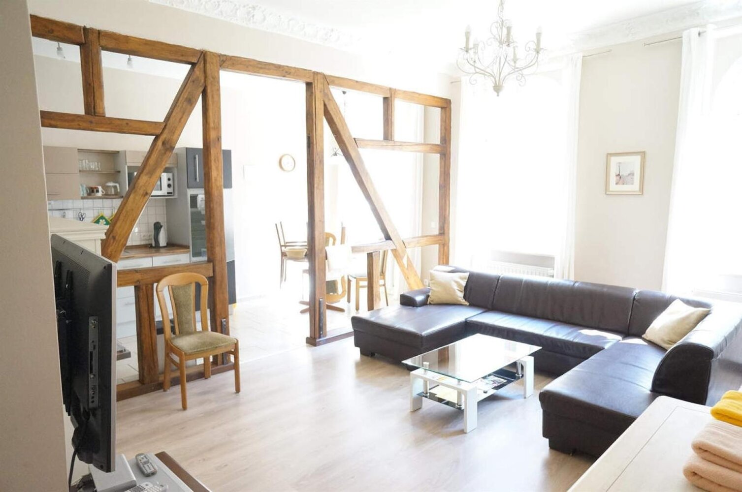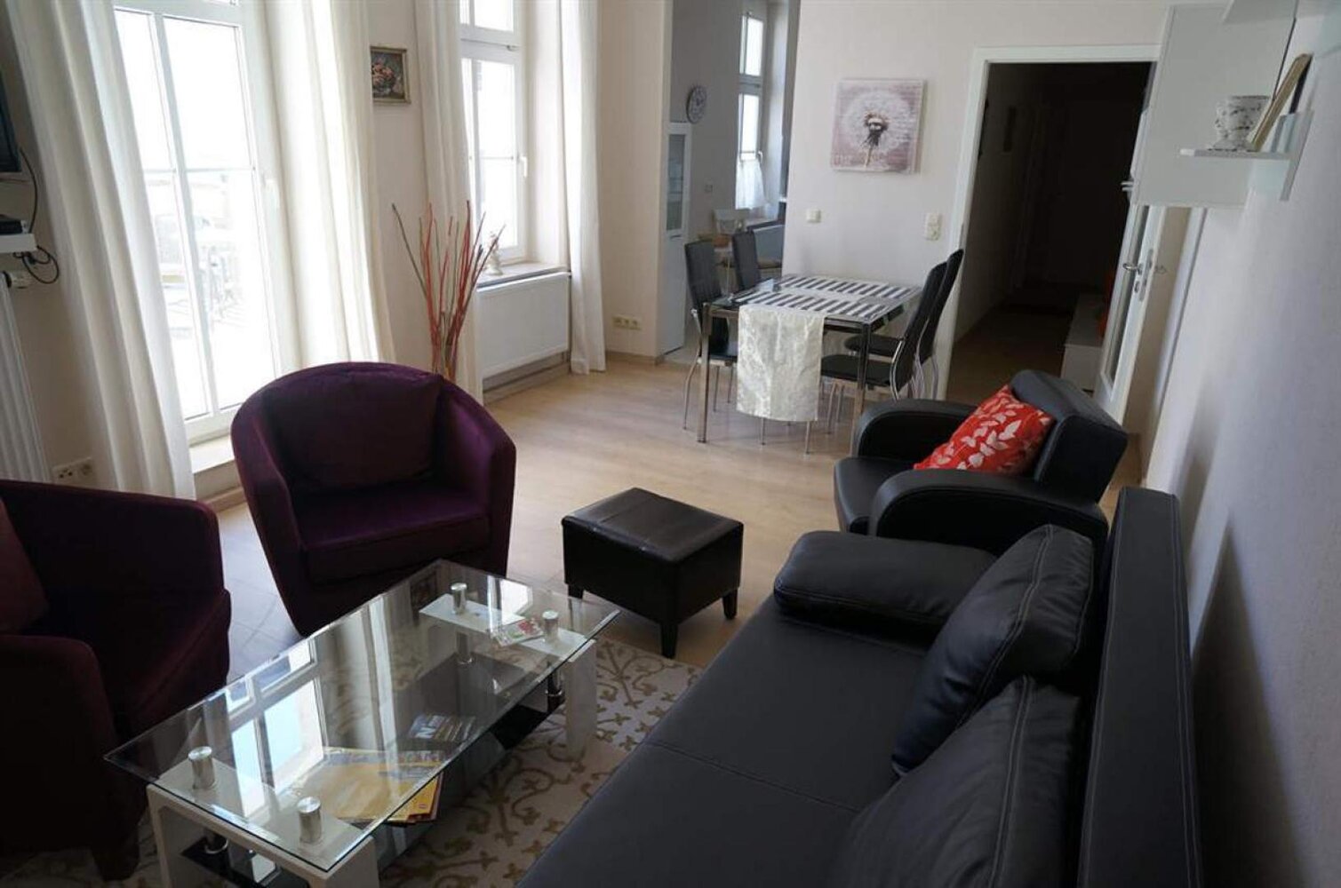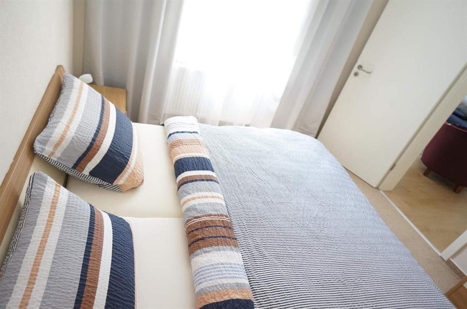Jede Ferienwohnung besitzt zwei Schlafzimmer zum grünen Innenhof mit jeweils zwei behaglichen Betten (1 Doppelbett, 2 Einzelbetten (jeweils 90 x 200). Alle Schlafzimmer mit Verdunklungsrollos aufs Modernste ausgestattet. Eine Schlafcouch bzw. eine bequeme Klappmatratze im Wohnzimmer, Kinderreisebett, Hochstuhl vorhanden, modernes Bad auch mit Wanne. Geeignet für Allergiker, neu renoviert (Neubauzustand), teilweise mit Fachwerk, WLAN, PKW-Stellplatz kostenlos, Fahrräder stehen sicher im Innenhof. Haustiere auf Anfrage, Rauchen auf dem Balkon, Bettwäsche und Handtücher im Preis enthalten, Bezahlung vor Ort oder per Überweisung, keine Anzahlung erforderlich.
