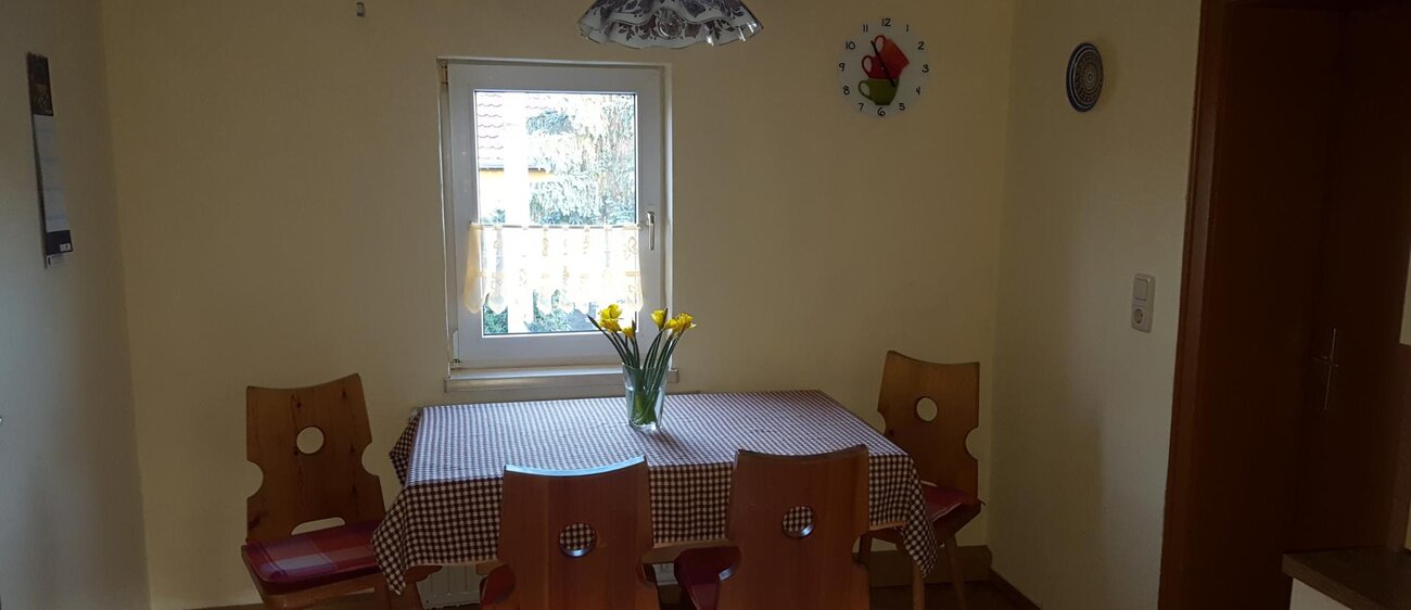 Vor den Toren Jenas in ruhiger Lage, landschaftlich schön gelegen befindet sich unsere Ferienwohnung. 10 Minuten zu Fuß bis zum Wald und 10 Autominuten nach Jena. Die Ferienwohnung ist gemütlich und komplett ausgestattet (ca. 65 qm), 2 Schlafzimmer, Wohnzimmer, Küche, Du/WC, für 2-5 Personen, Parkplatz am Haus, Grillmöglichkeit.