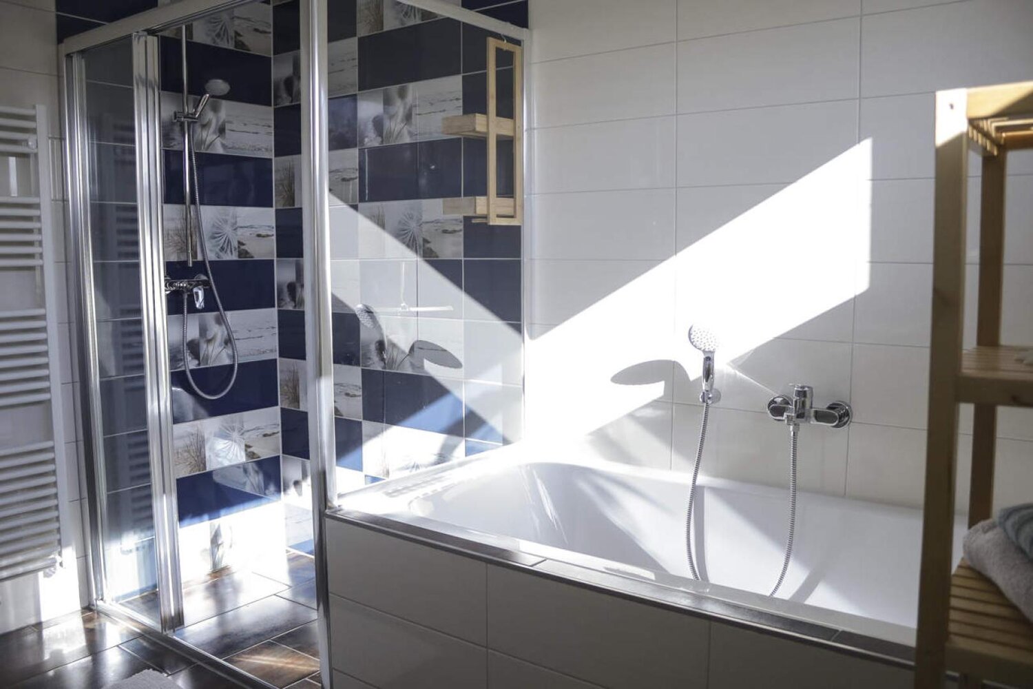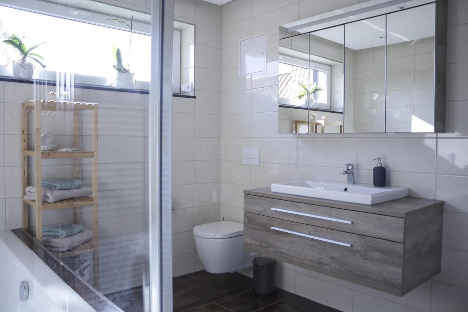 Neben der besonders idyllischen Lage besticht die Ferienwohnung durch ihr angenehmes Raum- und Farbkonzept sowie durch eine moderne Einrichtung. Für wohlige Wärme in den Räumen sorgt eine Fußbodenheizung. Wohnzimmer und Küche sind in einem offenen Wohnbereich vereint mit dem Zugang zur großzügig geschnitten Terrasse.