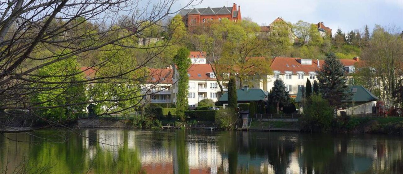 Unsere Pension mit neun Betten befindet sich oberhalb des herzoglichen Residenz-Schlosses Neu-Augustusburg auf dem Weißenfelser Klemmberg, einer angenehmen und begehrten Wohngegend am Rande der Stadt. Von uns aus erreichen Sie in zwei Minuten zu Fuß den „Balkon“ von Weißenfels, einen interessanten Ausblick auf die im Saaletal liegende Innenstadt mit dem Saale-Radwanderweg und der historischen Via Regia. Das Schloss mit vielseitigem Museum, sehr sehenswerter Kirche und fürstlicher Grablege ist von uns nur 500 Meter entfernt. Ebenso nah ist die Welt des süßen Genusses in der Argenta-Schokoladenmanufaktur. Der Klemmberg-Park mit dem Bismarck-Turm sorgt für viel Grün. Die Anfänge unseres Viertels liegen im wilhelminischen Kaiserreich, unser Haus wurde 1907 als Jugendstil-Villa erbaut. Im Jahre 1989 eröffneten wir als erstes Gästehaus auf dem Klemmberg und als eine der ersten privaten Zimmervermietungen in Weißenfels überhaupt.