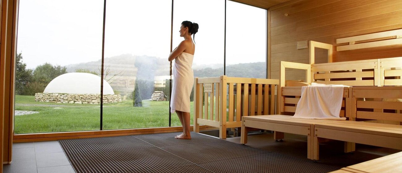 Ausblick auf den magischen Wunderwald, der Bademantelgang führt direkt in die Toskana Therme. Das in erholsamer Umgebung gelegene Hotel an der Therme verfügt über 97 Nichtraucher-Doppel-, Einzel- und Familienzimmer.