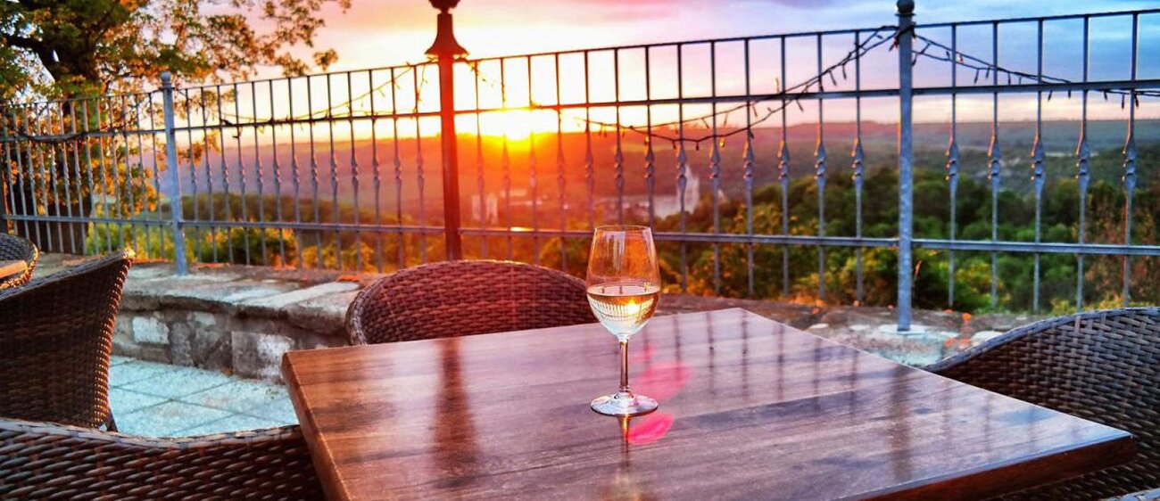 Von einer Anhöhe blickt unser Hotel & Restaurant, mit Sonnenterrasse, auf die Rudelsburg, Burg Saaleck sowie in die reizvolle und geschichtsträchtige Landschaft des Saale- und Ilmtals.