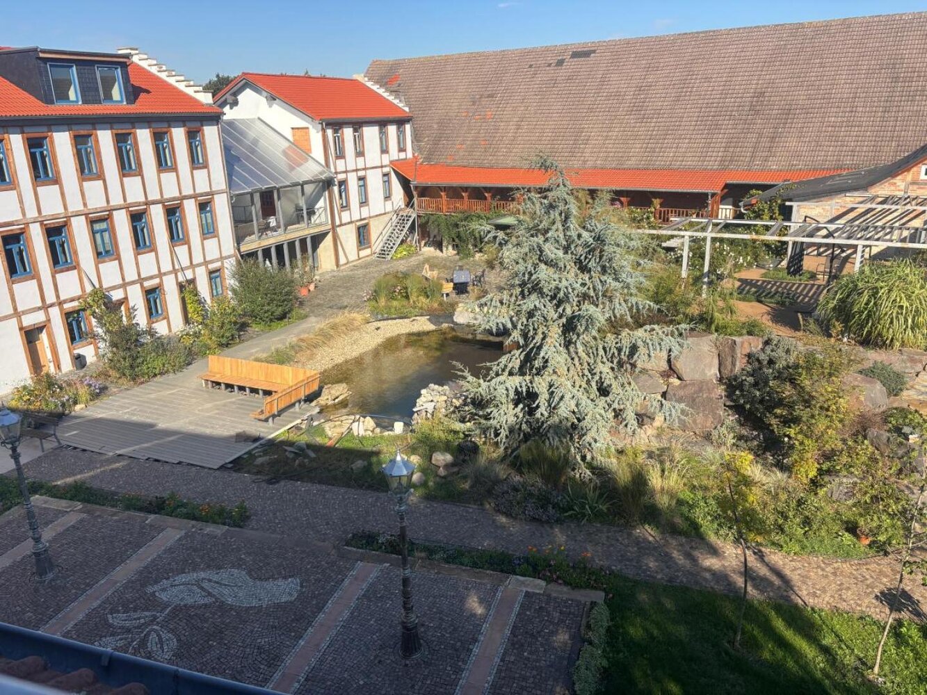 Eingebettet in die sanfte Landschaft östlich der Saale, liegt Wölkau idyllisch zwischen Leuna und Bad Dürrenberg. Der Ort besticht durch seine ländliche Ruhe und eine der ältesten Dorfkirchen der Region, die nach liebevoller Sanierung wieder für Besucher geöffnet ist. Wölkau ist der perfekte Ausgangspunkt, um die kulturreiche und naturnahe Umgebung zu entdecken. Ob als Ausflugs- oder Etappenziel für Radfahrer entlang der Saale oder als Ausgangsbasis für Erkundungen der Region zwischen Leuna und Bad Dürrenberg – der Hof in Wölkau heißt Gäste herzlich willkommen. Liebevoll gestaltet mit großzügigem Freigelände, einem Biotop, sonnigen Terrassen sowie einer Bar mit Imbissangebot lädt er zum Verweilen ein. Für Familien gibt es einen Spielplatz, und ab und an bereichert ein kleines Kulturprogramm das Hofleben mit Veranstaltungen unter freiem Himmel. Der Hof bietet Platz auch für große Gruppen. | Waschmaschine und Trockner stehen ebenfalls zur Verfügung.