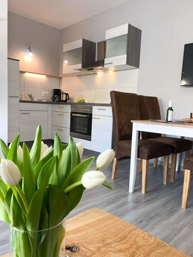 Alle Sehenswürdigkeiten der Stadt erreichen Sie in fünf Minuten zu Fuß. In unseren fünf modern eingerichteten Ferienwohnungen für zwei bis fünf Personen finden Einzelreisende oder kleine Gruppen eine passende Unterkunft. Alle Wohnungen sind großzügig geschnitten und bieten viel Platz zur persönlichen Entfaltung. Ihr Auto parken Sie bequem im Innenhof. Radfahrer können einen abschließbaren Fahrradraum nutzen. Speisen Sie in Ihrer vollausgestatteten Wohnküche oder spazieren Sie eines der zahlreichen Cafés, Bäckereien oder Restaurants in der nahen Umgebung. Organisierte Weinproben sind möglich. Alle Wohnungen verfügen über einen Balkon oder Terrasse/Freisitz im Innenhof.