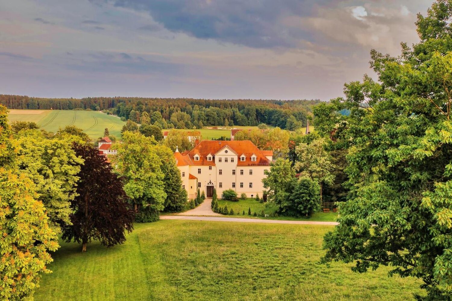 Das Schloss liegt in der Ortsmitte unweit der Kirche. Es wurde von 1660 bis 1670 am Ort eines Jagdhofes der wettinischen Kurfürsten erbaut. Bis 1880 war es Mittelpunkt der Jagd- und Sommerresidenz der Herzöge von Sachsen-Altenburg. Ursprünglich spätmittelalterlicher Jagdhof der wettinischen Kurfürsten, mehrteilige schlichte Baugruppe, Rundturm und neugotisches Portal an der Nordseite des Hauptbaus. Parkanlage Der Schlosspark entstand ab 1830 aus dem vormaligen Hetzgarten, einer Jagdanlage der Herzöge von Sachsen-Gotha-Altenburg. Er zeugt unter Beeinflussung von Eduard Petzold als Landschaftspark der zweiten Hälfte des 19. Jh. von der deutschen Gartenkunst im späten Landschaftsstil. Das Alte Jagdschloss wurde ab 2007 zu einem altersgerechten "Wohnschloss" umgebaut, eine Besichtigung der Innenräume ist nur nach Rücksprache mit der Eigentümerin möglich.