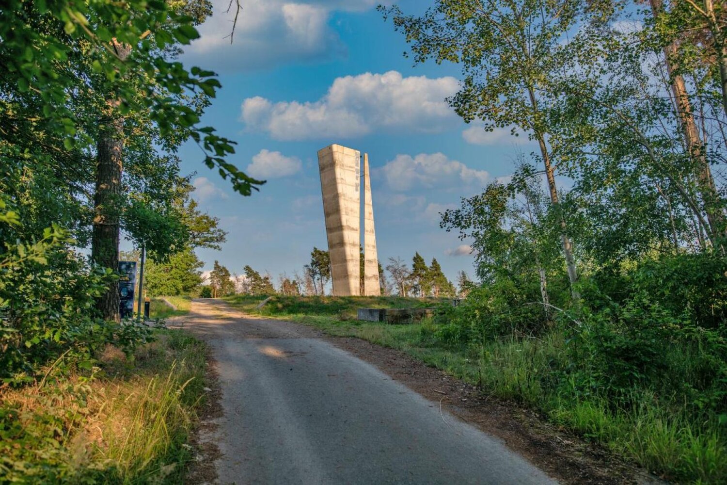 Der Fundort der Himmelsscheibe liegt etwa 3 km vom Besucherzentrum entfernt auf dem Mittelberg und wird von einem überdimensionalen Hohlspiegel markiert. Das „Himmelsauge“ verbindet Himmel und Erde genau an der Stelle, wo 3600 Jahre lang ein Bild des Himmels im Boden verborgen lag. Ein 30 Meter hoher und um 10 Grad geneigter Aussichtsturm ist wie der Zeiger einer überdimensionalen Sonnenuhr auf die Fundstelle gerichtet. Ein vertikaler Schnitt teilt das Bauwerk und markiert die Sichtachse zum Harzmassiv, wo die Sonne am längsten Tag des Jahres – zur Sommersonnenwende – untergeht.