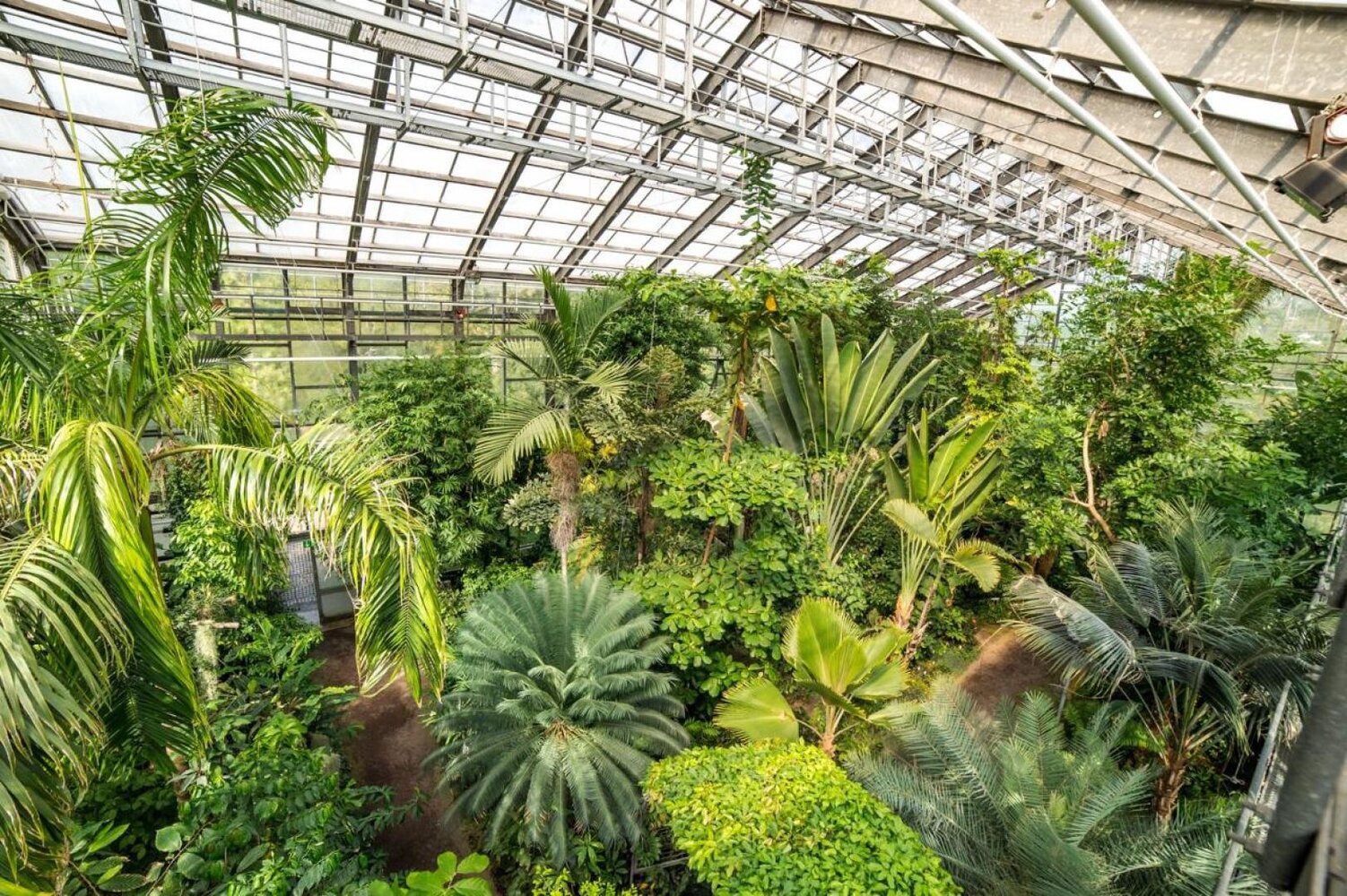 Die Gewächshäuser sind untergliedert: in ein Kakteen- und Sukkulentenhaus, in ein Hartlaub- und Lorbeerwald-Haus, in ein kombiniertes Palmen- und Tropenhaus, in ein kleines Aquarium- und Paludarienhaus und schließlich in ein Victoriahaus mit der Amazonas-Riesenseerose (Victoria) mit ihren ungewöhnlich großen Blättern. Der botanische Garten in Jena liegt im Zentrum der Stadt und ist eine Einrichtung der Friedrich-Schiller-Universität. Er gehört zum Institut für Spezielle Botanik.