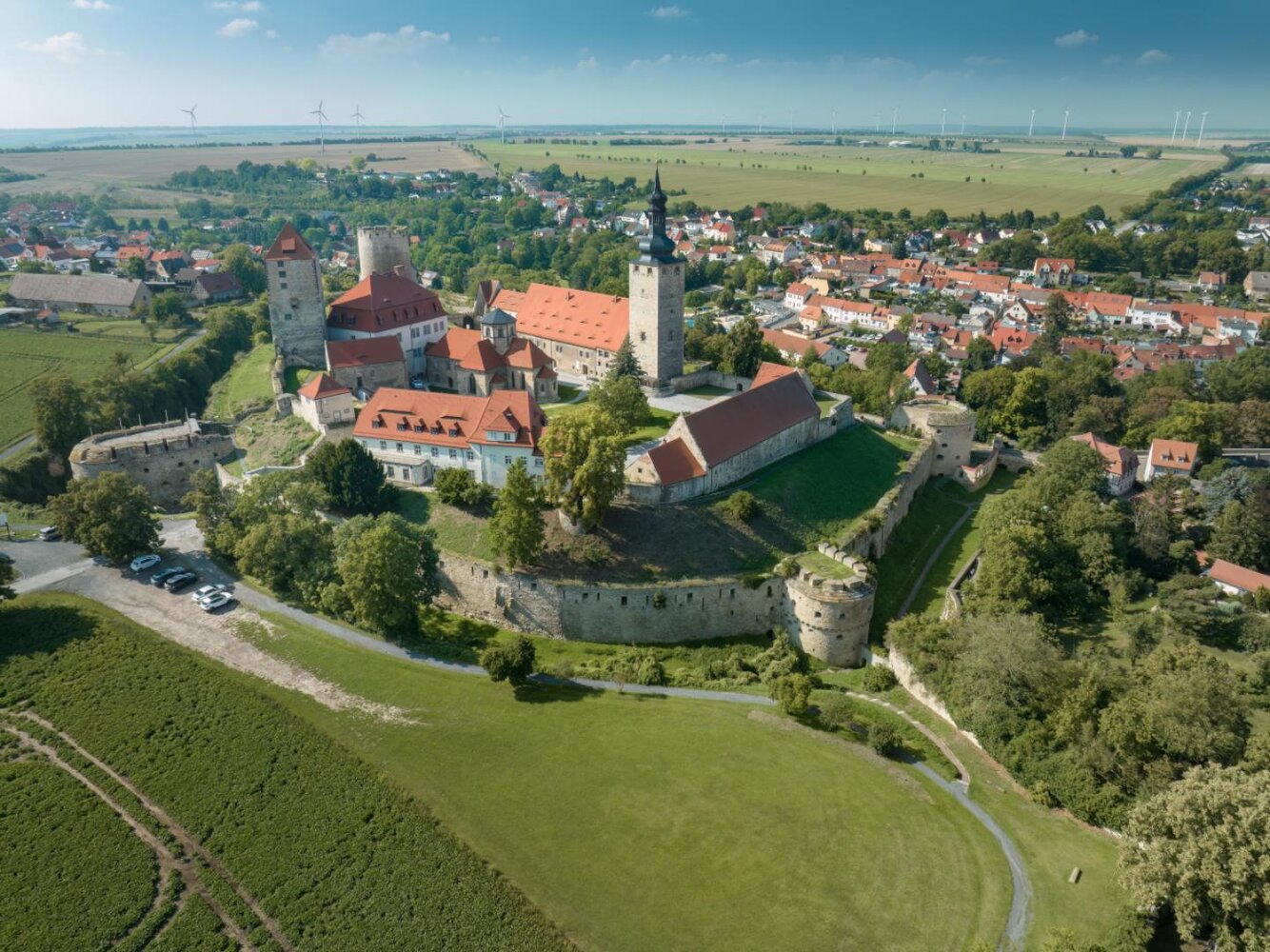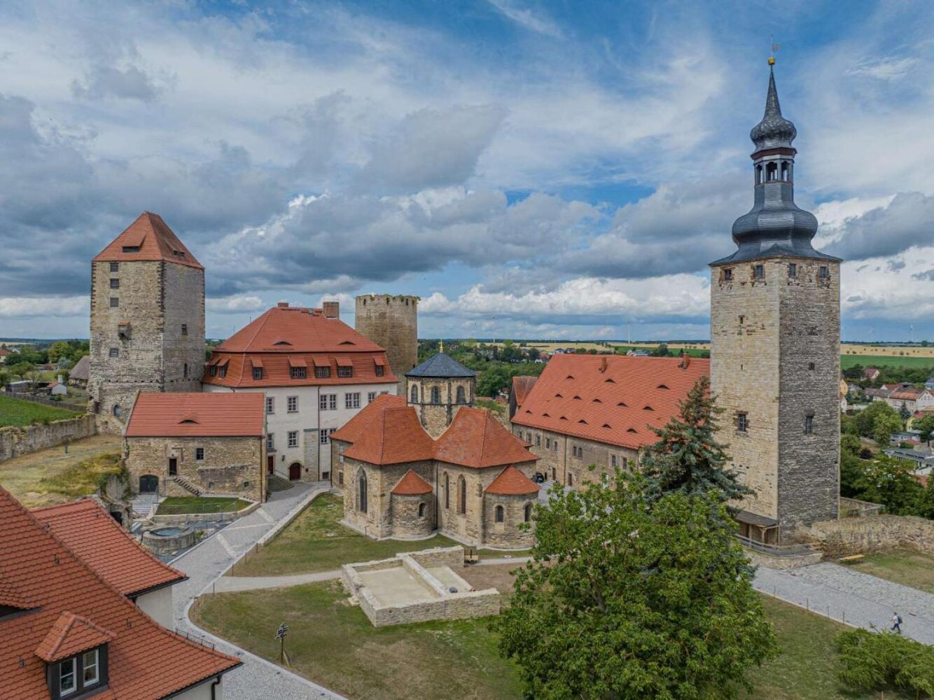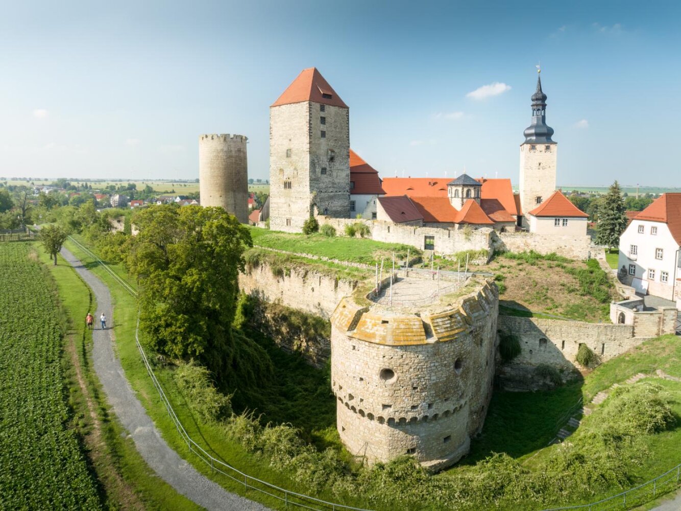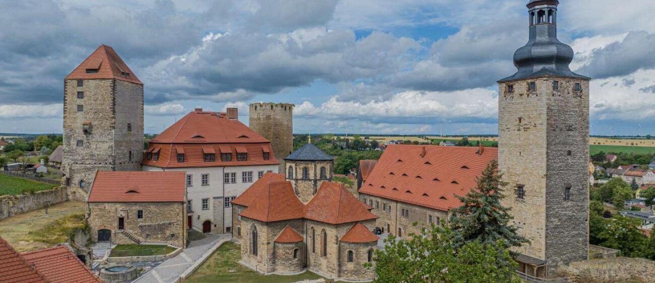 Auf einer Erhebung direkt an der Straße der Romanik liegt die Höhenburg Querfurt. Der mittelalterliche Festungsbau ist einer der größten in ganz Deutschland – so groß, dass die berühmte Wartburg ganze sieben Mal auf das Gelände passen würde. Die unterschiedlichen Gebäude, vor allem der mächtige Bergfried „Dicker Heinrich“, fallen sofort ins Auge und könnten dem ein oder anderen Besucher sehr bekannt vorkommen.