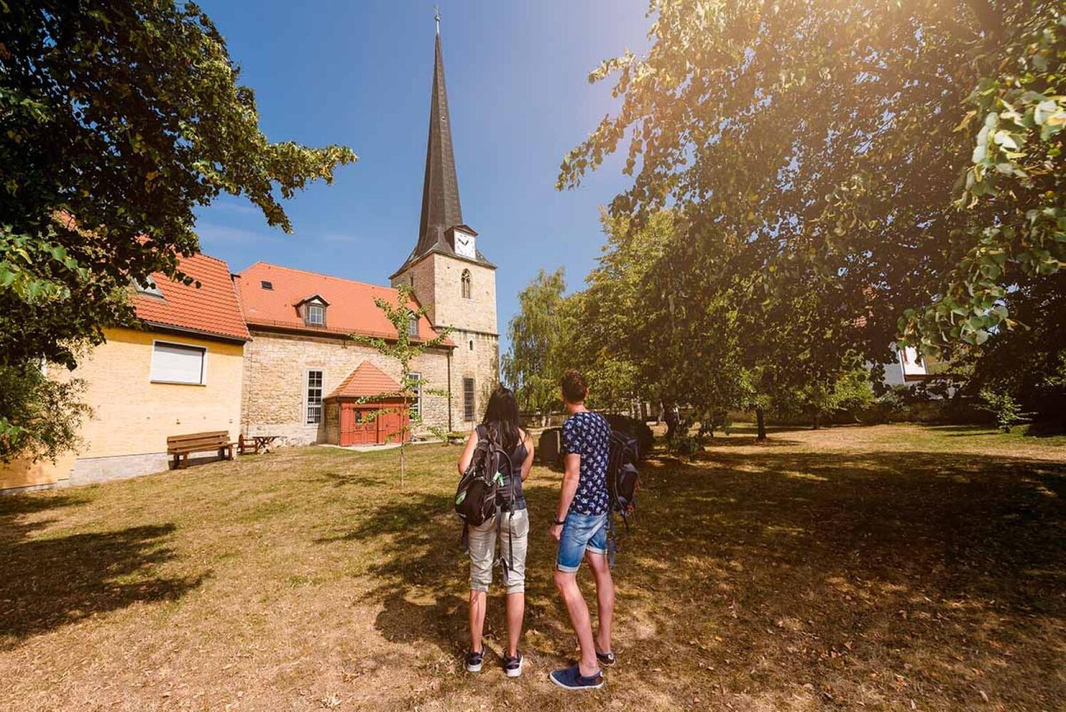 Die Dorfkirche St. Lucia in Flemmingen, nahe Naumburg (Saale), wurde um 1200 als romanische Chorturmkirche erbaut und zeigt sich äußerlich noch weitgehend im ursprünglichen Zustand. Im Jahr 1508 erfolgte eine Turmerhöhung, begleitet von der Installation eines spitzen Turmhelms und gotischen Maßwerkfenstern, die heute noch sichtbar sind. Im 18. Jahrhundert wurde das Kirchenschiff erhöht, um Platz für Emporen zu schaffen; dabei wurden die ursprünglichen romanischen Fenster zugemauert. Das romanische Säulenportal an der Südseite, geschmückt mit einem Würfelkapitell und Palmettendekor, zieht besondere Aufmerksamkeit auf sich. Im Inneren dominiert barocke Ausstattung aus dem 18. Jahrhundert, darunter eine kunstvolle Spiegeldecke, ein Kanzelaltar und ein Taufengel. Ein weiteres Highlight sind die spätromanischen Wandmalereien in der Apsis und dem Chor, die Christus, Engel und Heilige darstellen. Die Kirche ist der Heiligen Lucia geweiht, der Schutzpatronin gegen Augenleiden, deren Verehrung besonders bei Bauern verbreitet war. Besucher können hier nicht nur sakrale Kunst entdecken, sondern auch ein Stück der Geschichte der Region erleben.
