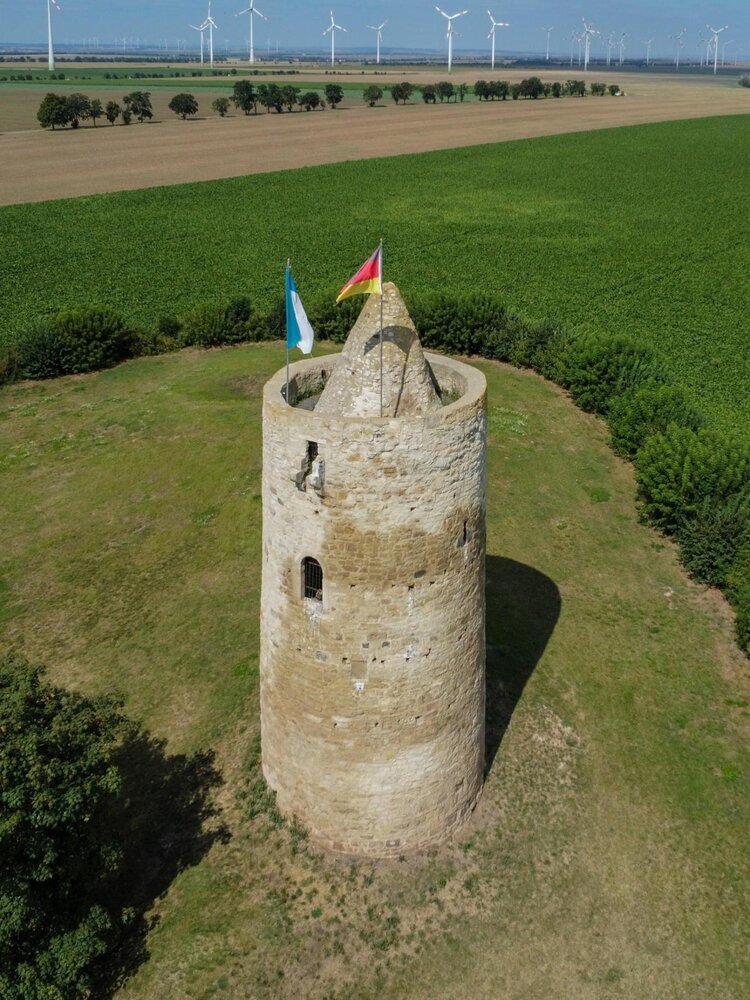 Auf einer rund 200 Meter hohen Erhebung nahe des Ortes Langeneichstädt steht die Eichstädter Warte. Der etwa 16 Meter hohe Turm wurde als Vorposten der Burg Querfurt erbaut und erfüllte damit aufgrund der guten Aussicht auf die Umgebung eine Wach- und Warnfunktion. Am Fuß hat der Turm einen Durchmesser von 23 Metern, aber keinen ebenerdigen Eingang. Dieser liegt, wie es häufig bei solchen Wehranlagen zu finden ist, in knapp acht Metern Höhe. Das Innere ist also nur über eine Leiter erreichbar, die man bei Gefahr von innen einziehen konnte.