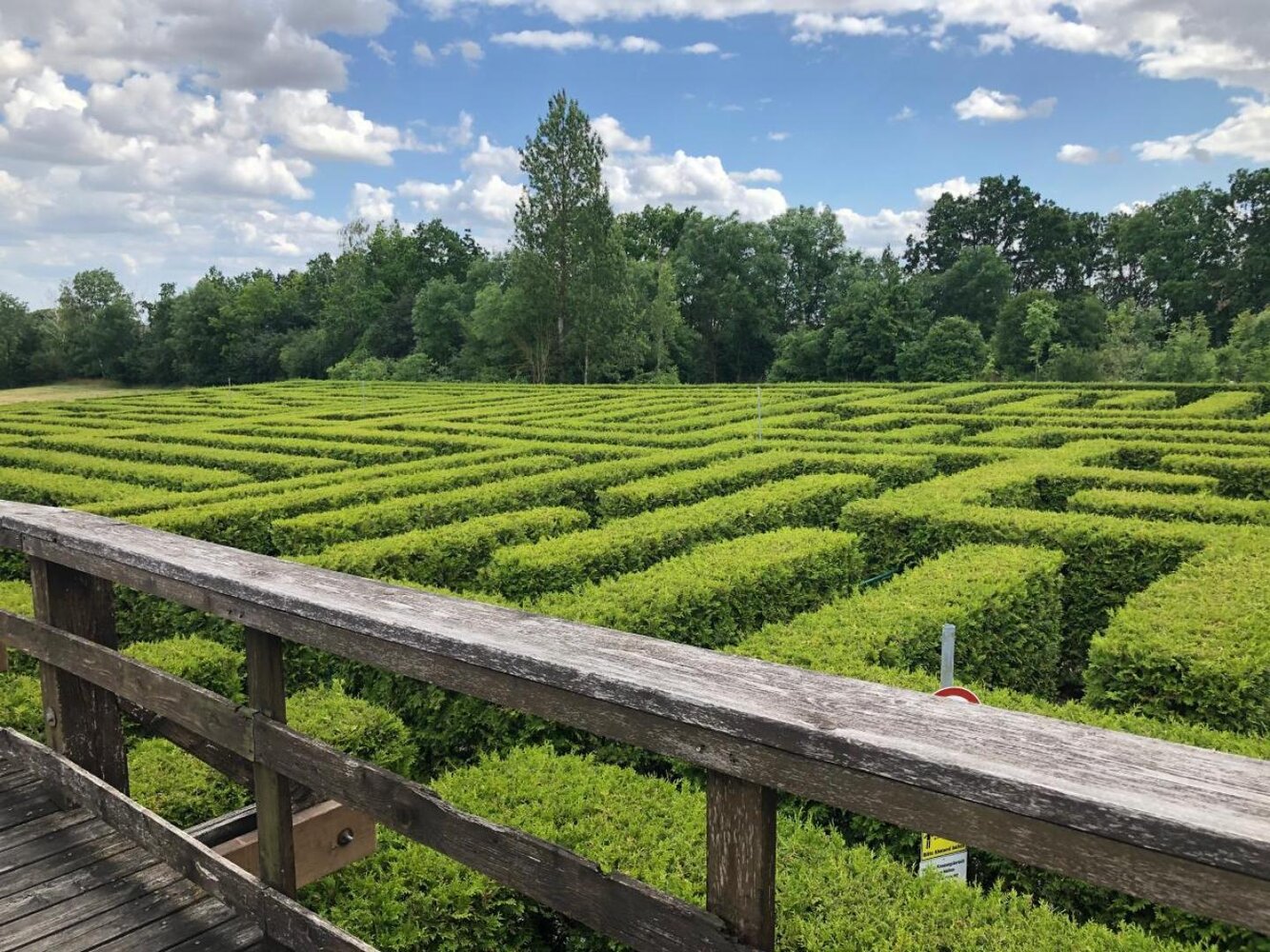 Der Irrgarten ist einer der größten (54,80 m x 54,80 m) seiner Art in Deutschland. Orientierung ist gefragt, irren aber kein Problem. Wer einen verzweifelten Hilfeschrei loslässt, der bekommt selbstverständlich Hilfe von „oben". Das Wegenetz umfasst insgesamt 1550 m ohne Sackgassen. Der kürzeste Weg zum Ziel ist nur 365 m (wenn man ihn findet).