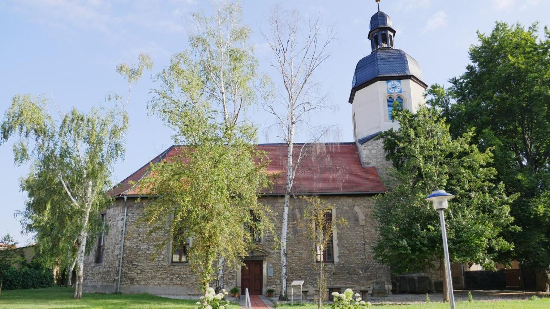 Der Turm der Kirche St. Veit stammt aus dem 12. Jahrhundert. Die Kirche selbst wurde von 1718 bis 1722 umgebaut. 1967 wurde aus Döbris (Zeitz) eine Orgel mit 13 Registern gekauft. Der Ort musste der Braunkohleförderung weichen. Diese Orgel wurde bis 2007 generalsaniert und erklingt wieder in alter Schönheit. Im Jahre 2006 wurde das Gotteshaus zur "Friedenskirche St. Veit" neu gewidmet wegen seiner Nähe zum Areal der Schlacht von Jena und Auerstedt. In den Glasbehältern, die unter der Altarplatte angebracht sind, fügen sich verschiedenste Erdschichten aus aller Welt zu einem harmonischen Gesamtbild.