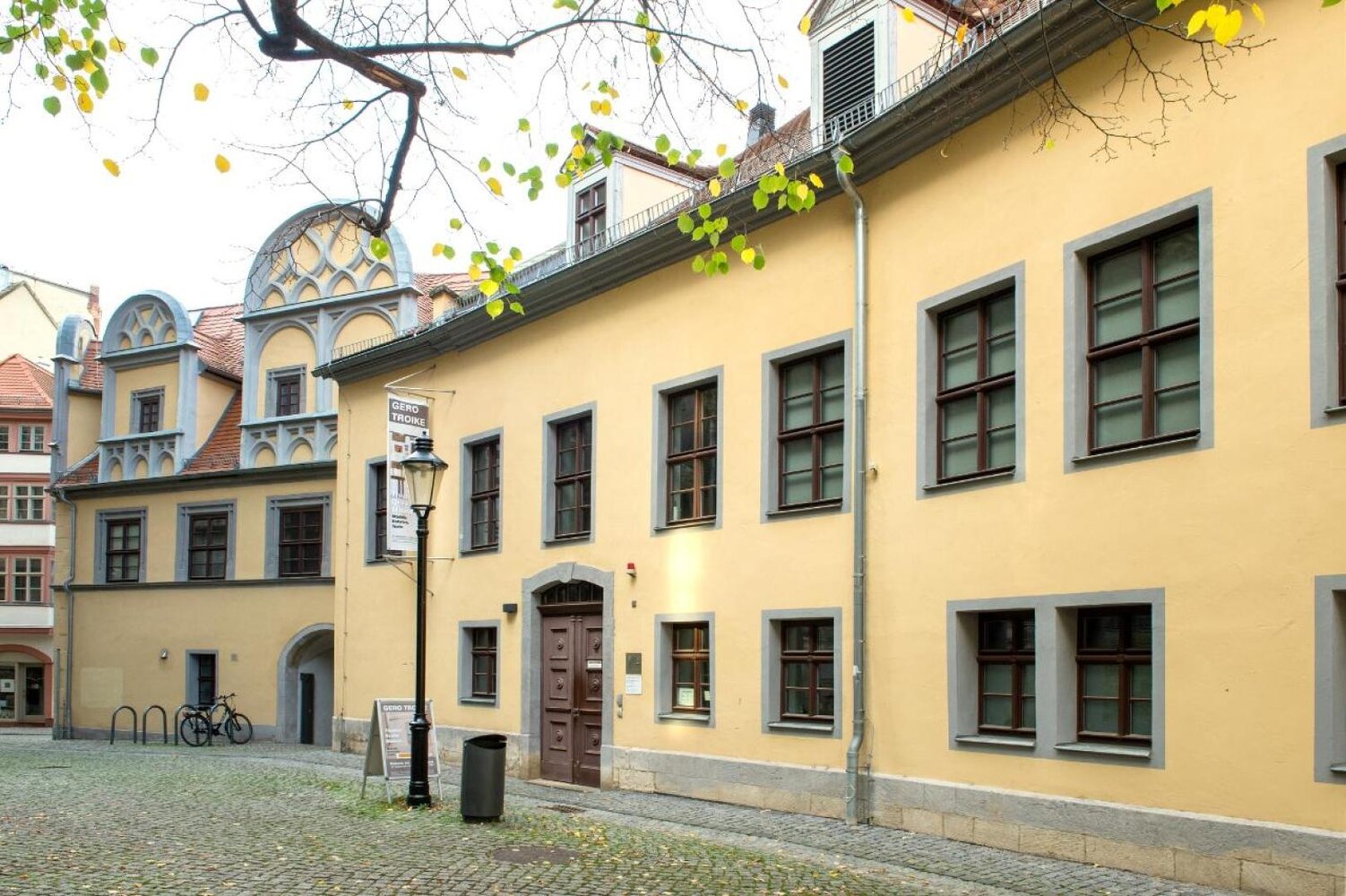 Im Zuge der Landesausstellung zum Naumburger Meister konnte das Schlösschen 2011 umfangreich saniert und umgebaut werden. Seitdem verfügt das Obergeschoss über drei großzügige Ausstellungsräume, die abwechselnd durch das Stadtmuseum Naumburg sowie das Theater bespielt werden. Präsentiert werden in diesen Galerieräumen im Jahr zwei Ausstellungen zu zeitgenössischer Kunst, stadtgeschichtlichen oder auch kulturhistorischen Themen. Auch familienfreundliche Mitmach-Ausstellungen waren hier bereits zu Gast und ein weiterer fester Bestandteil ist zudem der Kunstmarkt in der Adventszeit, bei dem regionale Künstlerinnen und Künstler ihre Werke präsentieren. Beim Schlösschen handelt es sich um einen Gebäudekomplex bestehend aus dem marktseitigen Altbau und dem jüngeren Südwestanbau. Der marktseitige Altbau wurde um 1500 auf den Grundmauern zweier Bürgerhäuser am Wenzelskirchhof errichtet. Er diente mit seinen sieben Kramgewölben Händlern als Markthalle. Der stadtauswärts gerichtete Anbau hingegen wurde um das Jahr 1540 durch den Ratsbaumeister Hans Witzleube erbaut. Auch hier entstanden zwei steinerne Verkaufsgewölbe. Infolge baulicher Veränderungen wandelte sich das Erscheinungsbild des Schlösschens immer und immer wieder. Der bekannteste Bewohner des Schlösschens war wohl der Theologe und Reformator Nikolaus von Amsdorf (1483-1565), der als erster evangelischer Bischof ab 1542 hier im Schlösschen fünf Jahre lang residierte.