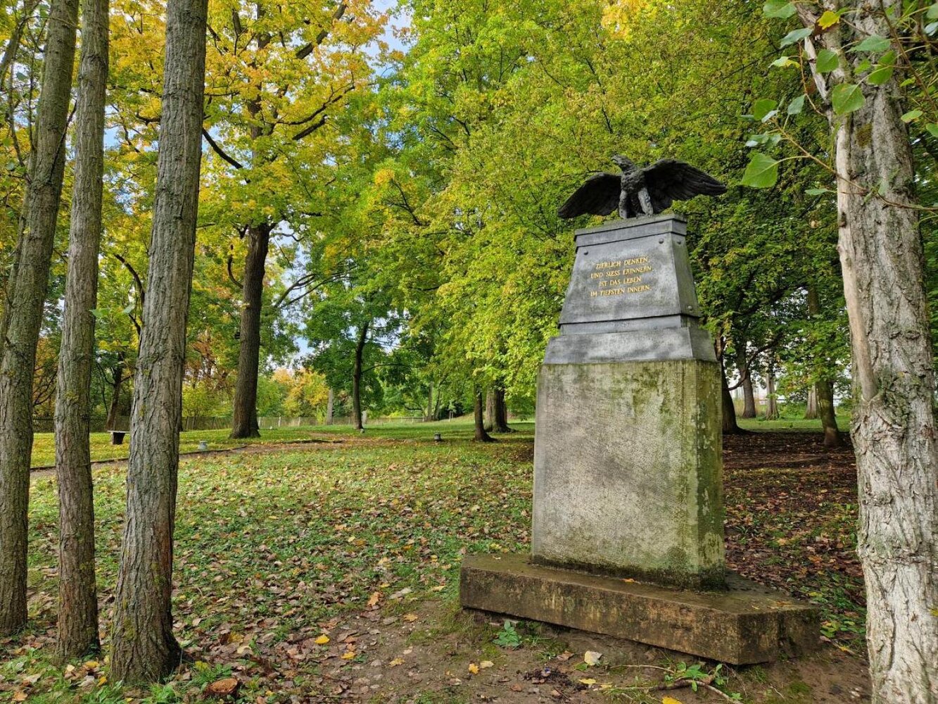 Ein besonderer Höhepunkt in der Geschichte des Gartens war die Errichtung des weltweit ersten Goethe-Denkmals. Zu Goethes 72. Geburtstag ließ Maria Pawlowna im Jahr 1821 ein Denkmal zu Ehren des Dichters im Garten errichten. Entworfen wurde es von Johann Peter Kauffmann, einem renommierten Künstler jener Zeit. Das Denkmal, ein gusseisener Adler, wurde 1974 rekonstruiert und ist ein bleibendes Zeugnis der engen Verbindung zwischen Goethe und diesem Ort.