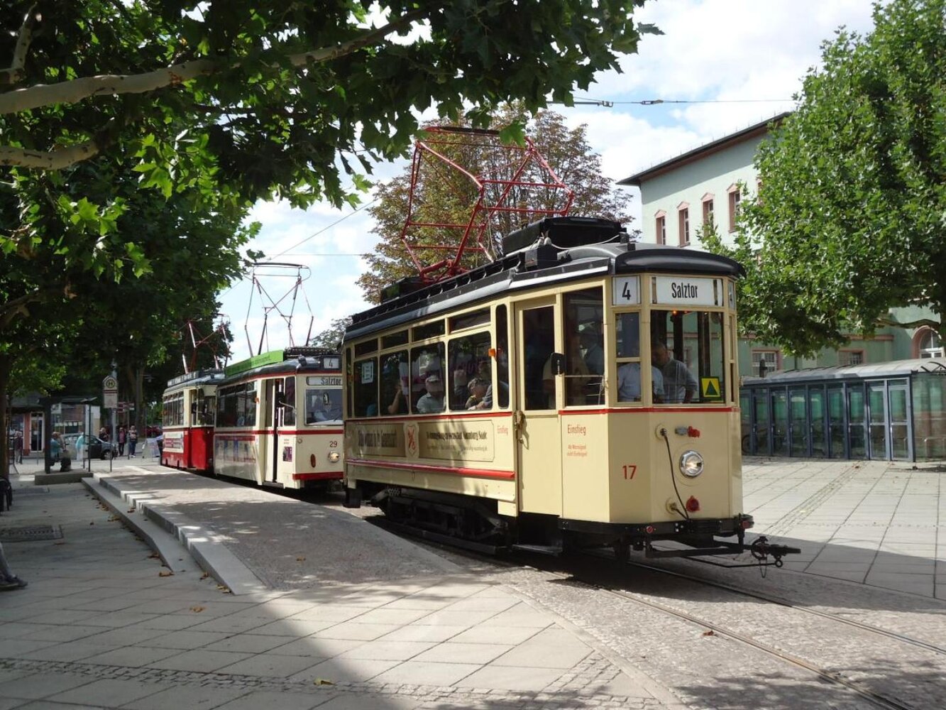 Täglicher Linienverkehr mit historischen Straßenbahnen Die Naumburger Straßenbahn ist jeden Tag öffentlich unterwegs: Quietschvergnügt pendeln die nostalgischen Bahnen aus DDR-Zeiten durch die Stadt und vermitteln noch heute den Charakter und Charme einer Kleinstadt-Straßenbahn. Die Strecke führt vom Hauptbahnhof zur Innenstadt und ist 2,8 km lang. Die ehemalige Ringstraßenbahn, seit ihrer Gründung 1892 auch "Wilde Zicke" genannt, ist heute der kleinste Straßenbahnbetrieb Deutschlands. Lassen Sie sich zurückversetzen in die Gründerzeit und das pulsierende Herz einer hervorragend sanierten Innenstadt. Die Fahrkarten erhalten Sie direkt beim Fahrer. Feiern Sie einmal ganz exklusiv auf Schienen und mitten in der Stadt. Dafür können Sie eine Straßenbahn inkl. Fahrer mieten. Während der Fahrt mit der "Wilden Zicke" werden Sie mit Wein- oder Sektspezialitäten aus der Region Saale-Unstrut verwöhnt (ab 10 Personen). Eine Führung durch das denkmalgeschützte Depot können Sie auf Wunsch hinzubuchen.