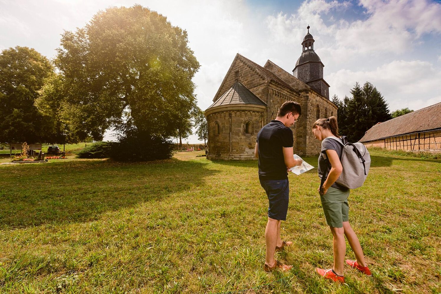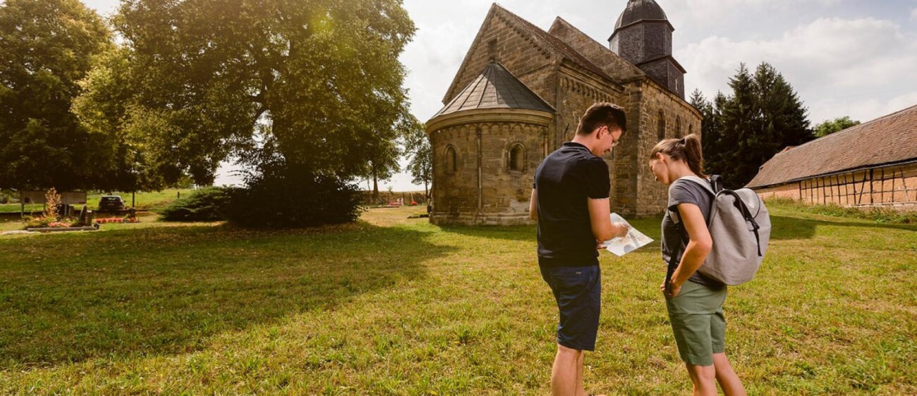 Die Margaretenkirche in Steinbach, nahe Bad Bibra, ist ein schönes Beispiel romanischer Baukunst und Teil der berühmten „Straße der Romanik“. Erbaut um 1220 von Meistern der Naumburger Dombauhütte, beeindruckt die Kirche durch ihre robuste Architektur und die kunstvoll verzierten Kapitelle im Innenraum.
