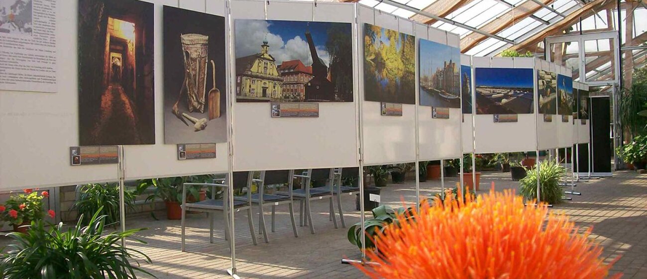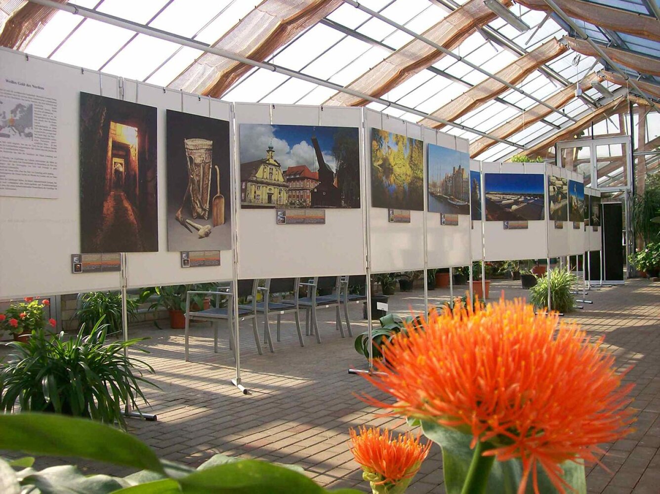 Das 2006 fertig gestellte Palmen- und Vogelhaus beherbergt exotische Vögel, Palmen sowie seltene Pflanzen. In dem lichtdurchfluteten zweiflügligen Haus finden ganzjährig Wechselausstellungen regionaler Künstler, Fotografen, Sammler und Vereine statt. Im Entreé befindet sich ein Informationsstand. Dort können Souvenirs und heimische Produkte erworben werden. Solemäntel zum Schutz der Kleidung und Rollstühle stehen zur Ausleihe bereit.