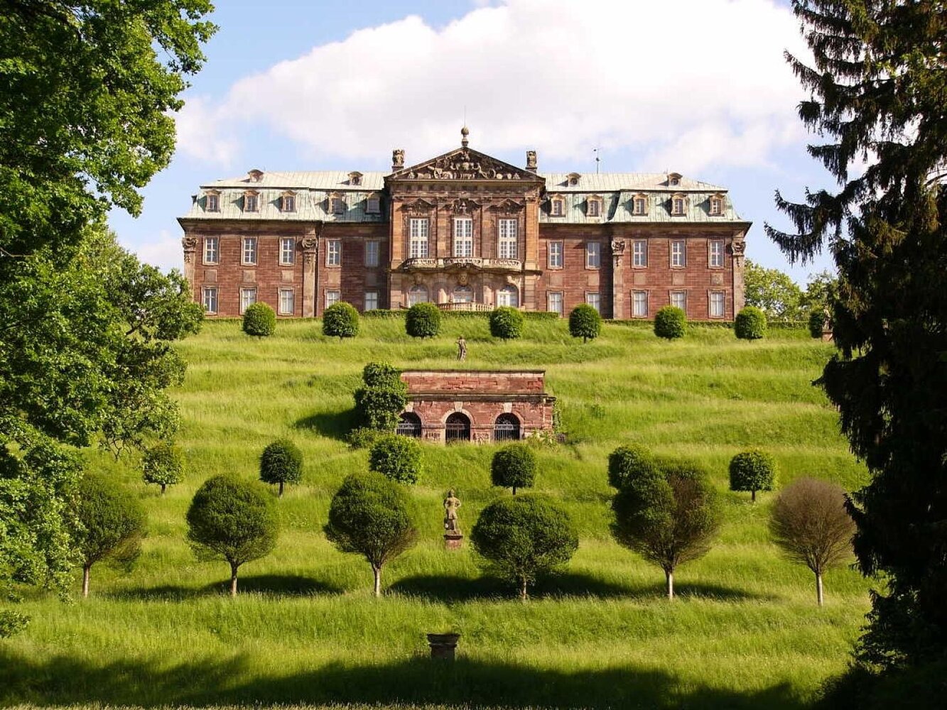 Schloss und Park sind bis auf Weiteres geschlossen! Schloss Burgscheidungen erhebt sich majestätisch über dem Unstruttal und beeindruckt durch seine barocke Architektur und die sorgfältig angelegten Gartenanlagen. Die Anlage blickt auf eine lange Geschichte zurück, die bis ins 9. Jahrhundert reicht. Der sächsische Baumeister David Schatz gestaltete das Schloss im 18. Jahrhundert um, wobei nur der nördliche und östliche Flügel im barocken Stil erbaut wurden, während Teile der Renaissance-Bauweise erhalten blieben. Der terrassenförmige Schlosspark bietet einen tollen Anblick: Symmetrische Wege, kunstvoll geschnittene Kugelbäume und Skulpturen prägen das Bild, während eine Grotte an italienische Gärten erinnert. Am Fuße des Berghangs liegt ein landschaftlich gestalteter Garten, umgeben von einem Wasserkanal, der aus der Unstrut gespeist wird. Besonders sehenswert sind die monumentalen Skulpturen, die die Monate symbolisieren und die Rasenböschungen zieren. Die Verbindung aus barocker Baukunst und der idyllischen Gartenanlage macht Schloss Burgscheidungen zu einem beliebten Ziel für alle, die sich für Geschichte, Architektur und Gartenkunst begeistern.