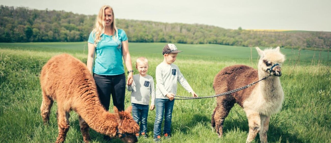 Kauen, schauen, sich nicht aus der Ruhe bringen lassen. Einem Alpaka würde es niemals in den Sinn kommen, irgendwelche Etappenziele erreichen – geschweige denn Rekorde brechen – zu wollen. Diese sympathische Take-it-easy-Einstellung überträgt sich zunehmend auf seinen Begleiter. Irgendwann wird die Leine schwerelos, lösen sich die Füße von der Schwerkraft, verwandelt sich der Spaziergang in eine Meditation. Da können selbst die Gehfaulsten – ob jung oder alt – mithalten. Ein perfekter Familien-, Freunde- oder Feierabend-Ausflug.