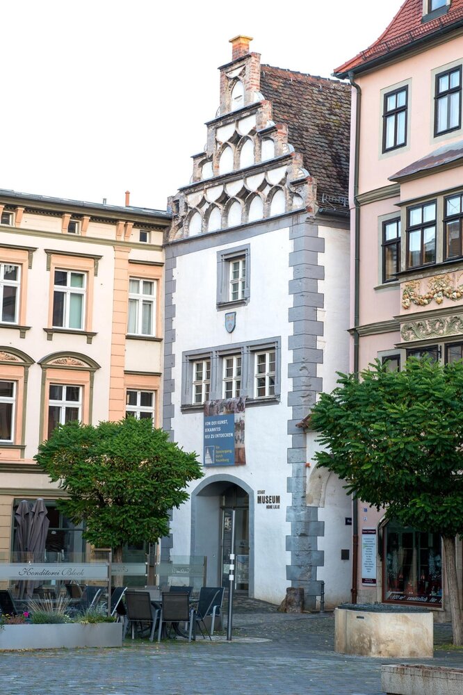 Direkt am Naumburger Marktplatz findet sich das Haus "Zur Hohen Lilie". Eigentlich handelt es sich um einen Komplex aus vier zusammengewachsenen Gebäuden, deren Geschichte bis in die Mitte des 13. Jahrhunderts zurückreicht. Damit ist die "Hohe Lilie" das älteste Naumburger Bürgerhaus, so alt wie die berühmten Stifterfiguren im Naumburger Dom. Die hier untergebrachte stadtgeschichtliche Dauerausstellung konzentriert sich auf die Geschichte des Naumburger Bürgertums in ihren verschiedenen Facetten. Eine Vielzahl von Objekten unterschiedlichster Herkunft und Funktion geben einen Eindruck von der Mannigfaltigkeit der materiellen Kultur vergangener Epochen. Aufmerksame Besucherinnen und Besucher können auf ihrem Rundgang zudem allerorten baugeschichtliche Spuren entdecken, die den Museumsbesuch zu einem unmittelbaren Erlebnis von Geschichte werden lassen. Darüber hinaus werden wechselnde Sonderausstellungen zu kulturgeschichtlichen Themen präsentiert und für Kinder ab 10 Jahren gibt es eine digitale Schnitzeljagd (Actionbound).
