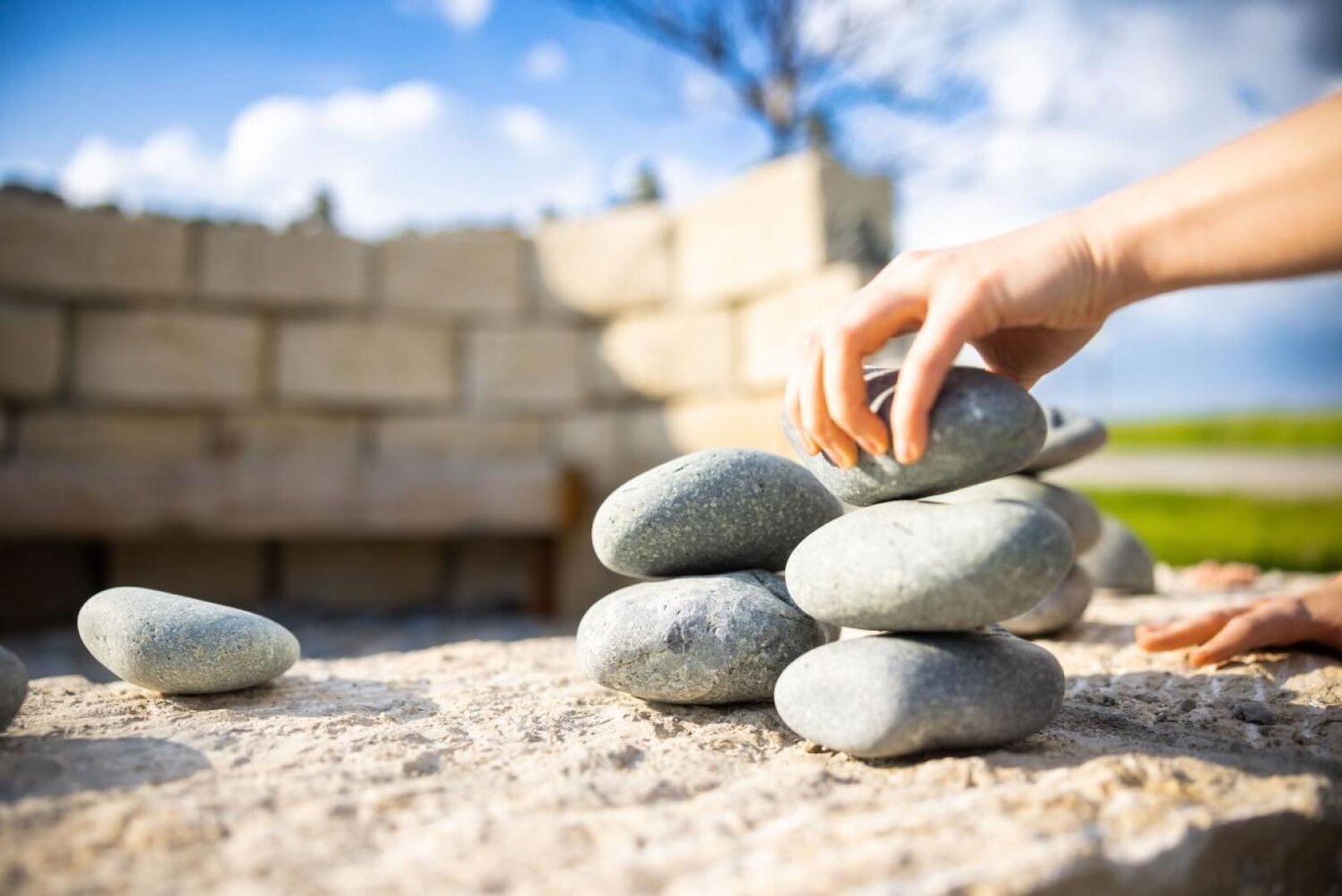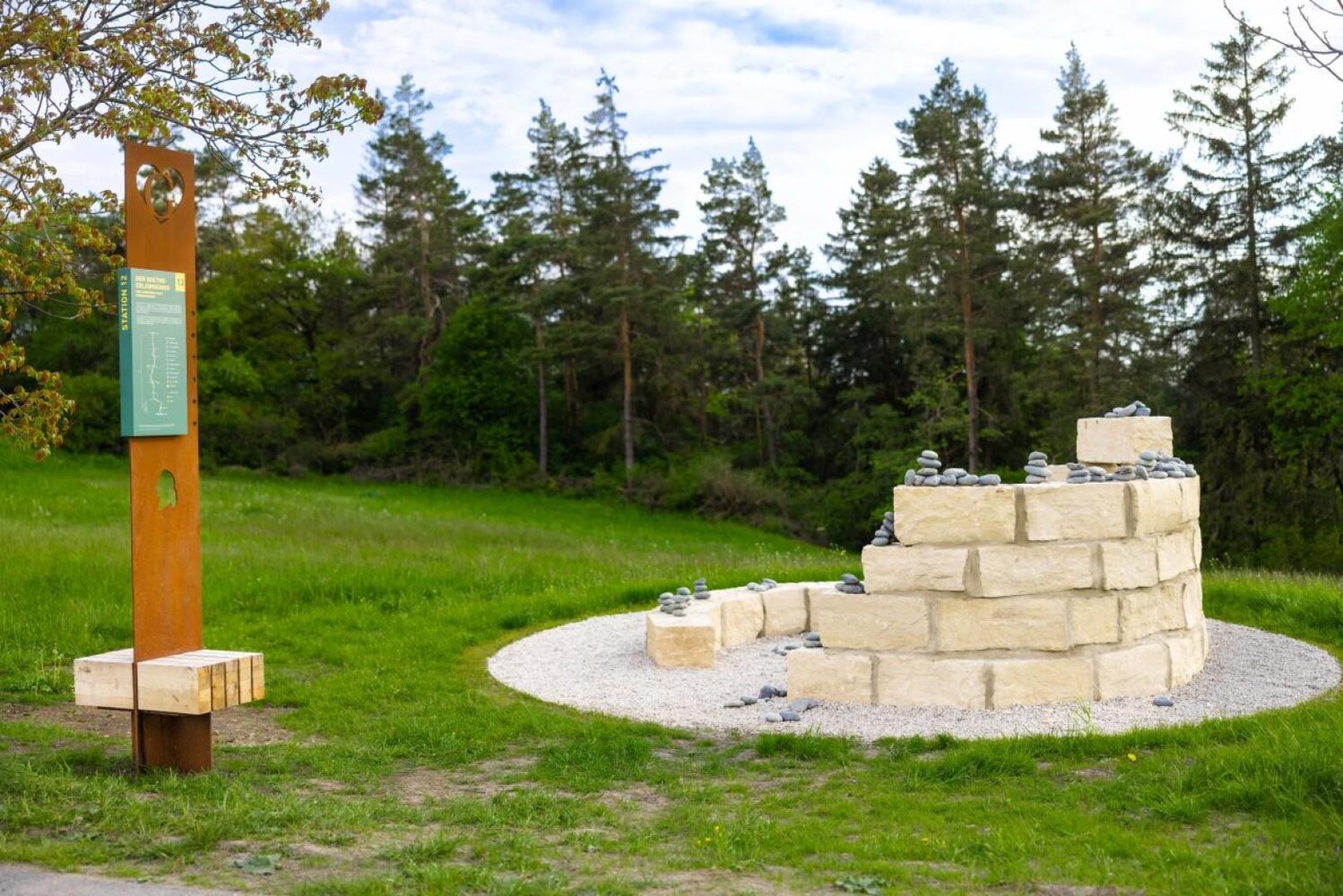 Unzählige Bauwerke wurden im Namen der Liebe geschaffen. So auch der Louisenturm, der unweit dieser Station abseits des Weges steht. Viele unterschiedliche Natursteine laden bei dieser Station dazu ein, selbst eine kleine Steinskulptur zu errichten und so einem Gefühl oder einem Gedanken ein Denkmal zu schaffen.